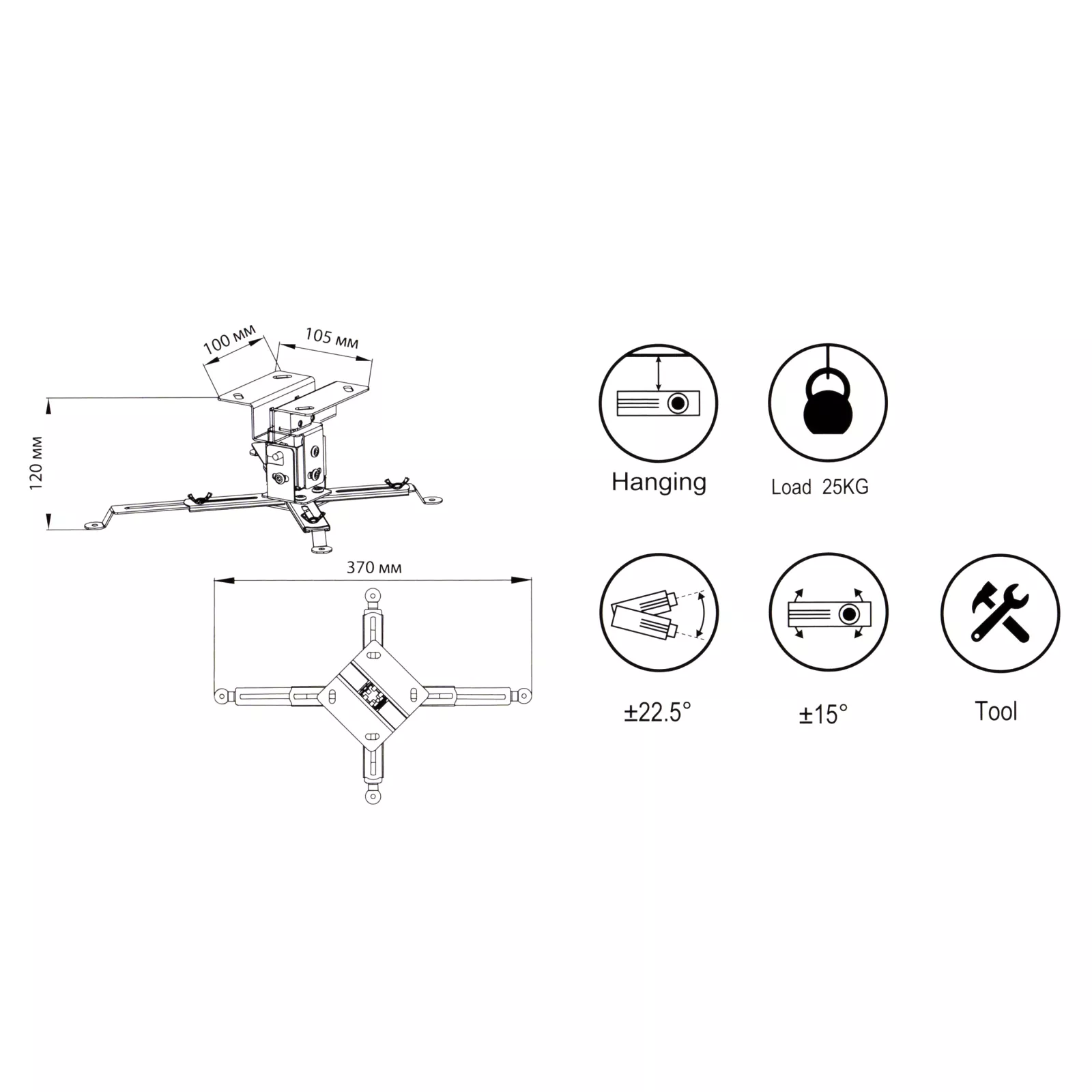 Кронштейн для проектора Vinga PC00-12B – крепление для короткофокусного проектора. Имеет хорошую и простую монтажную регулировку, что обеспечивает легкий монтаж и жесткую фиксацию проектора на кронштейне.