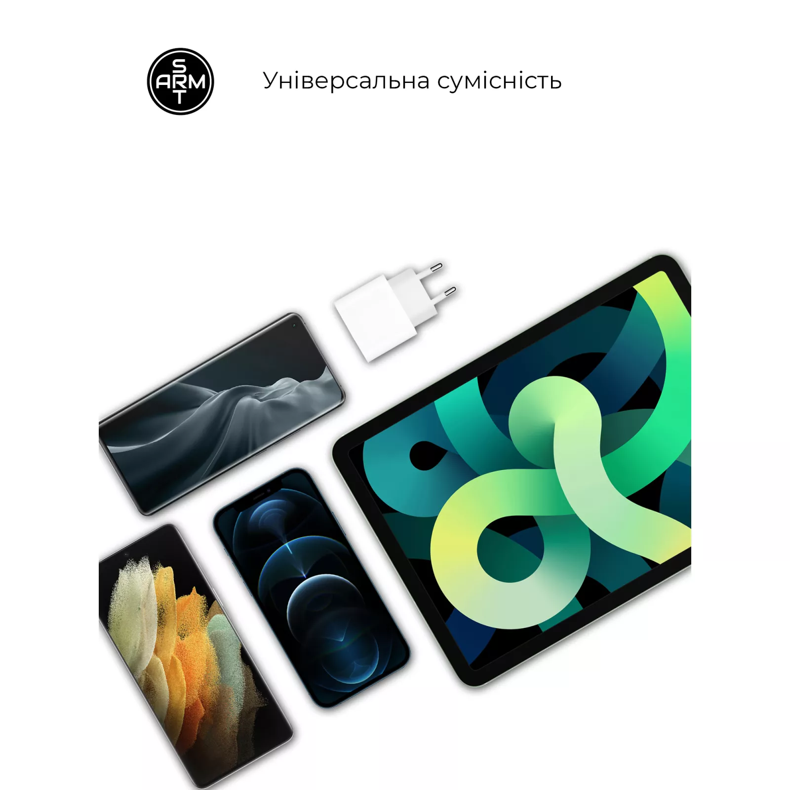 Зарядное устройство ArmorStandart AMU7V2 18W USB-C Power Adaptor позволяет быстро и эффективно заряжать устройство дома, в офисе или в дороге. Этот адаптер совместим с любыми устройствами, оснащен и укомплектованным портом USB-C, но для максимально и в полном объеме эффективности рекомендуется использовать его для зарядки iPad Pro 11 дюймов и iPad Pro 12. 9 дюйма (3-го поколения). Также его можно использовать для быстрой зарядки iPhone 12 или менее.