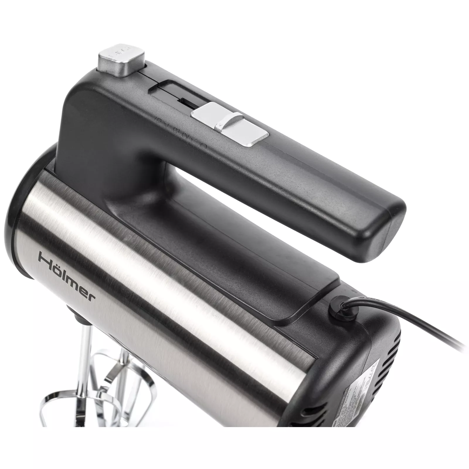 Модель H?lmer HHM-45 улучшенной эргономичной формы представлена в цвете металлик. Корпус миксера изготовлен из качественного пластика, а мощные венчики для взбивания и крючья для затворения теста – хромированной стали. Миксер быстро и эффективно справляется с множеством кулинарных задач: смешиванием и взбиванием ингредиентов, а также замешиванием теста и другими вкусными задачами. скоростей, подбираемых индивидуально под каждый продукт. Дополнительная особенность данной модели – турбо режим, позволяющий быстро и эффективно обрабатывать любые ингредиенты в считанные минуты. Для получения желаемого результата необходимо выбрать оптимальный режим работы и наслаждаться процессом приготовления..