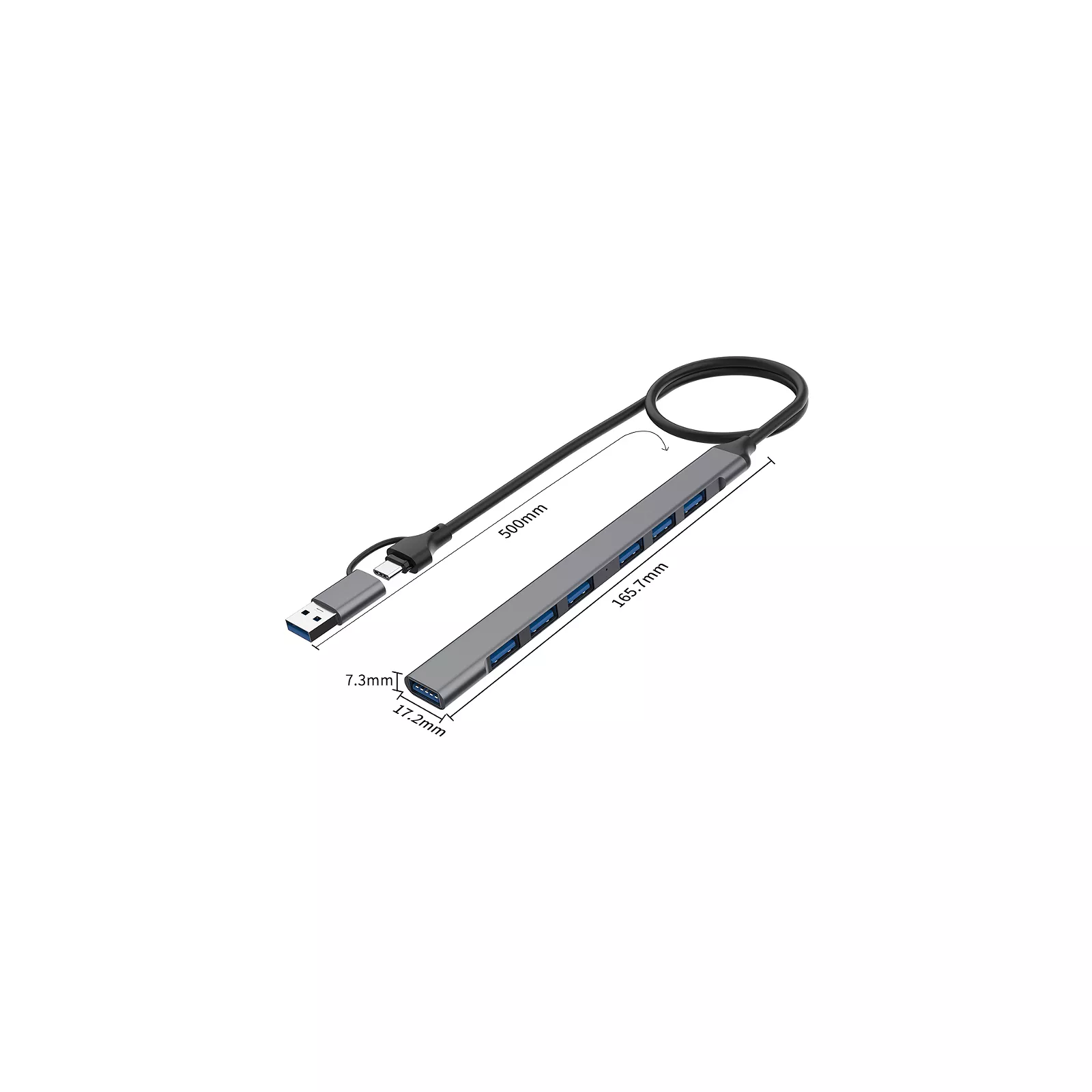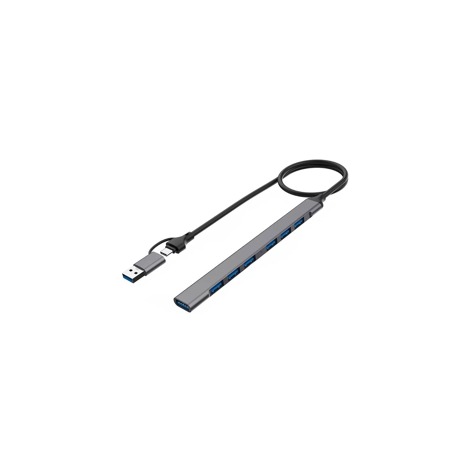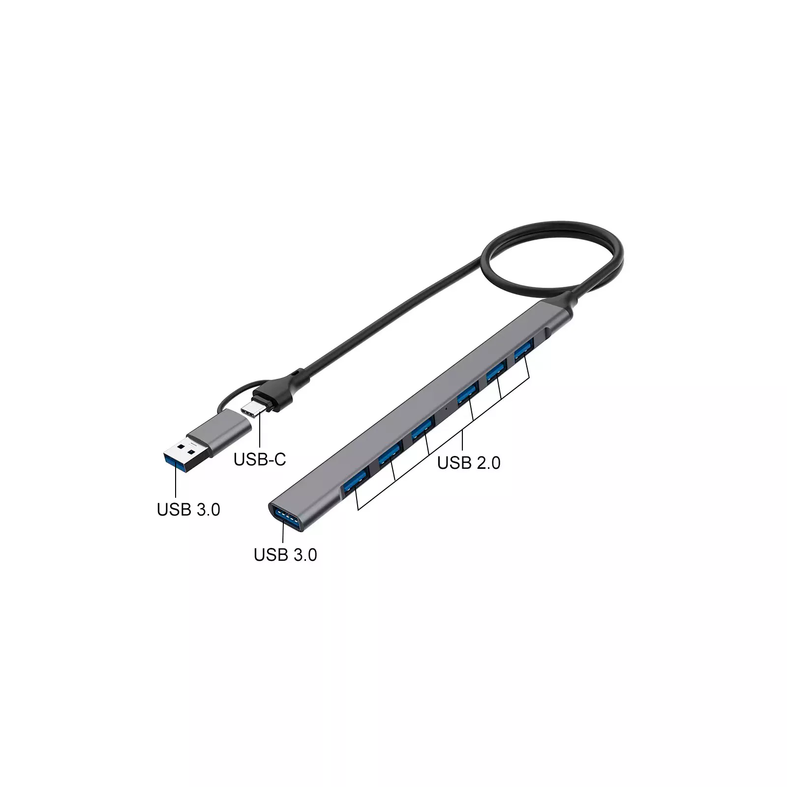 XOKO AC-700m USB/Type-c 3.0 chip 7 USB hub — металлический зарядный концентратор на 6 портов USB 2.0, 1 порт USB 3.0 сразу привлечет ваше внимание благодаря элегантному металлическому дизайну. Это идеальный компаньон для всех, кому не хватает USB-портов в ноутбуке, ультрабуке или ПК и кому приходится постоянно подключать и отключать свое любимое USB-оборудование, такое как флешки, мобильные телефоны, планшеты, цифровые фотоаппараты, MP3-плееры, принтеры и т.д.