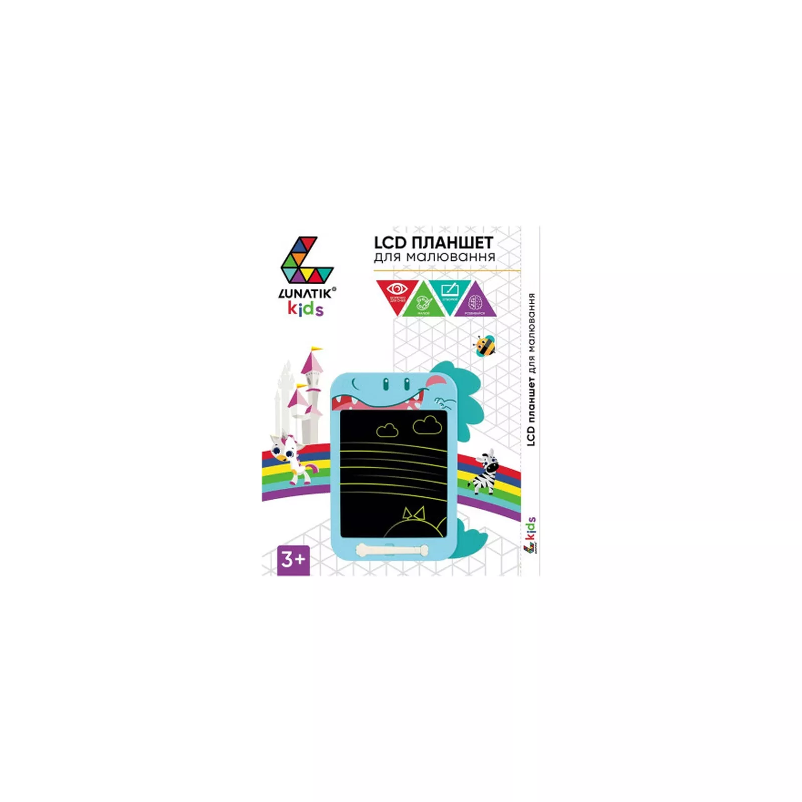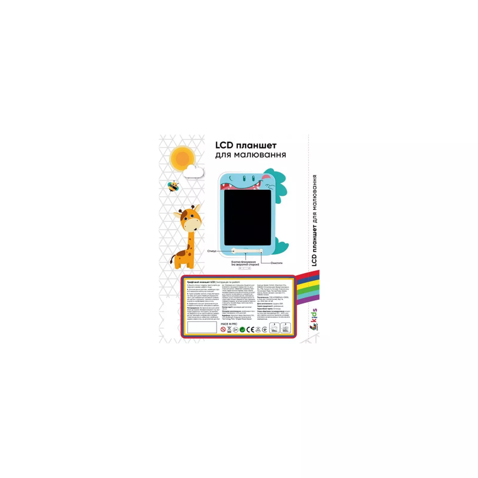 Легкий, компактный планшет, а главное с небьющимся долговечным LCD-экраном, удобно брать с собой в поездки.Габариты планшета позволяют легко вместить его в портфеле или рюкзаке.Специальная ручка(стилус) в комплекте позволит создать любые рисунки. Планшет разработан специально для детей, поэтому он безопасен в использовании.В планшете стоит очень экономичная батарея.Энергия тратится только на стирание и рисование изображений.Не рекомендуется использовать для рисования острые предметы.В планшете предусмотрена функция сохранения предыдущего изображения.