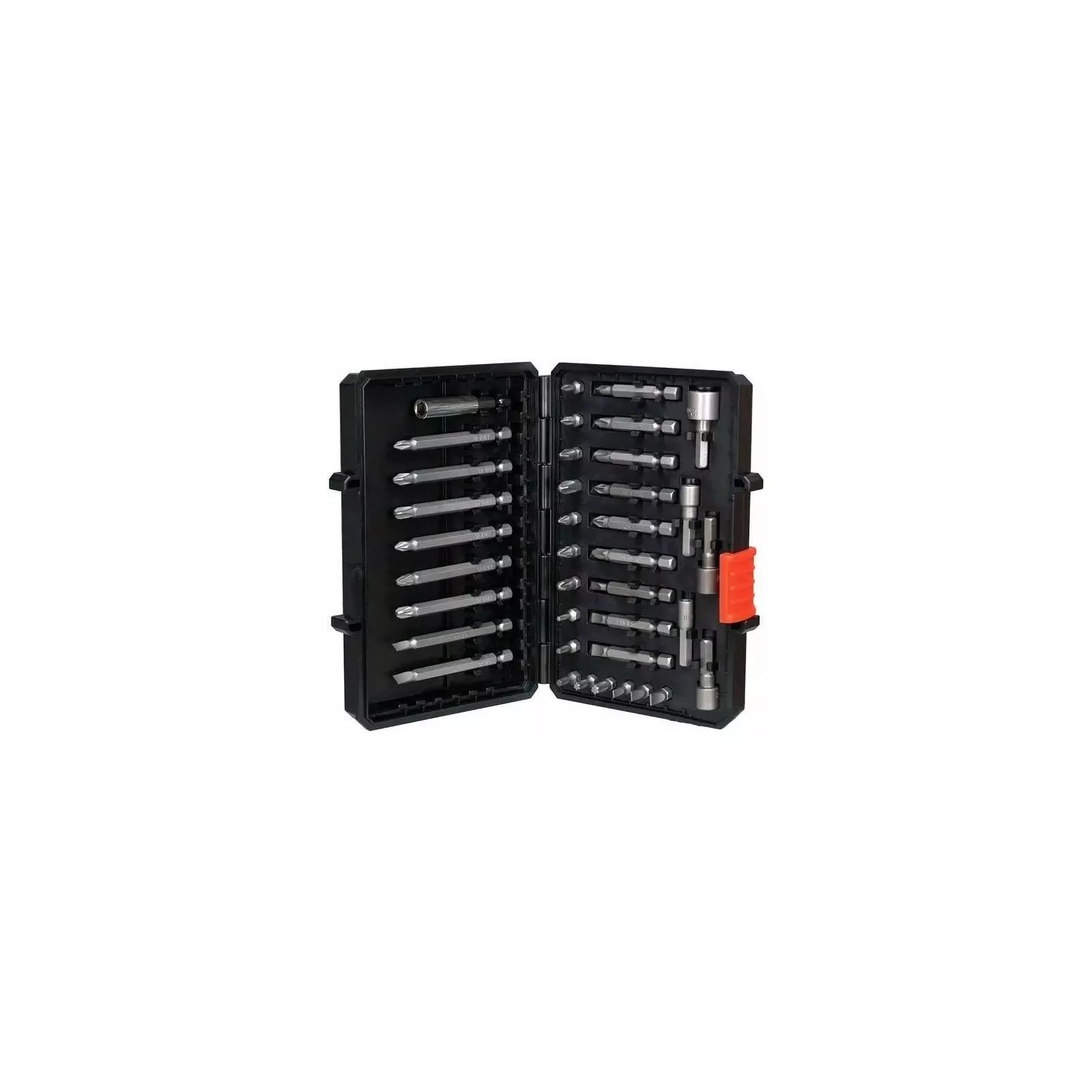 Набор из 38 аксессуаров от Black + Decker, содержащий ассортимент отверточных насадок для выполнения наиболее распространенных операций заворачивания/отвращения.
