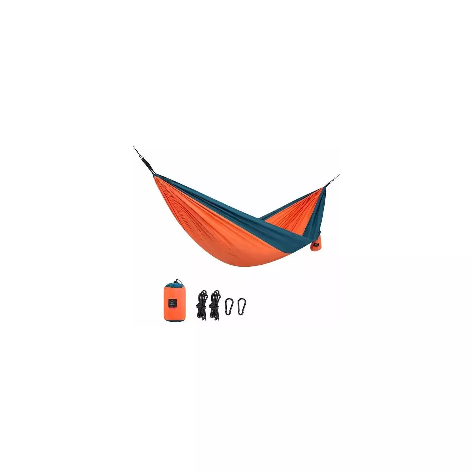 Гамак рекомендуется подвешивать на пролете около 3 м. В качестве точек крепления можно использовать два дерева. Закрепить на них гамак можно с помощью прилагаемых веревок и карабинов. Расстояние над грунтом составляет 50 см. Такой гамак можно взять в поход, он прекрасно подойдет для туризма, кемпинга, велотуризма.