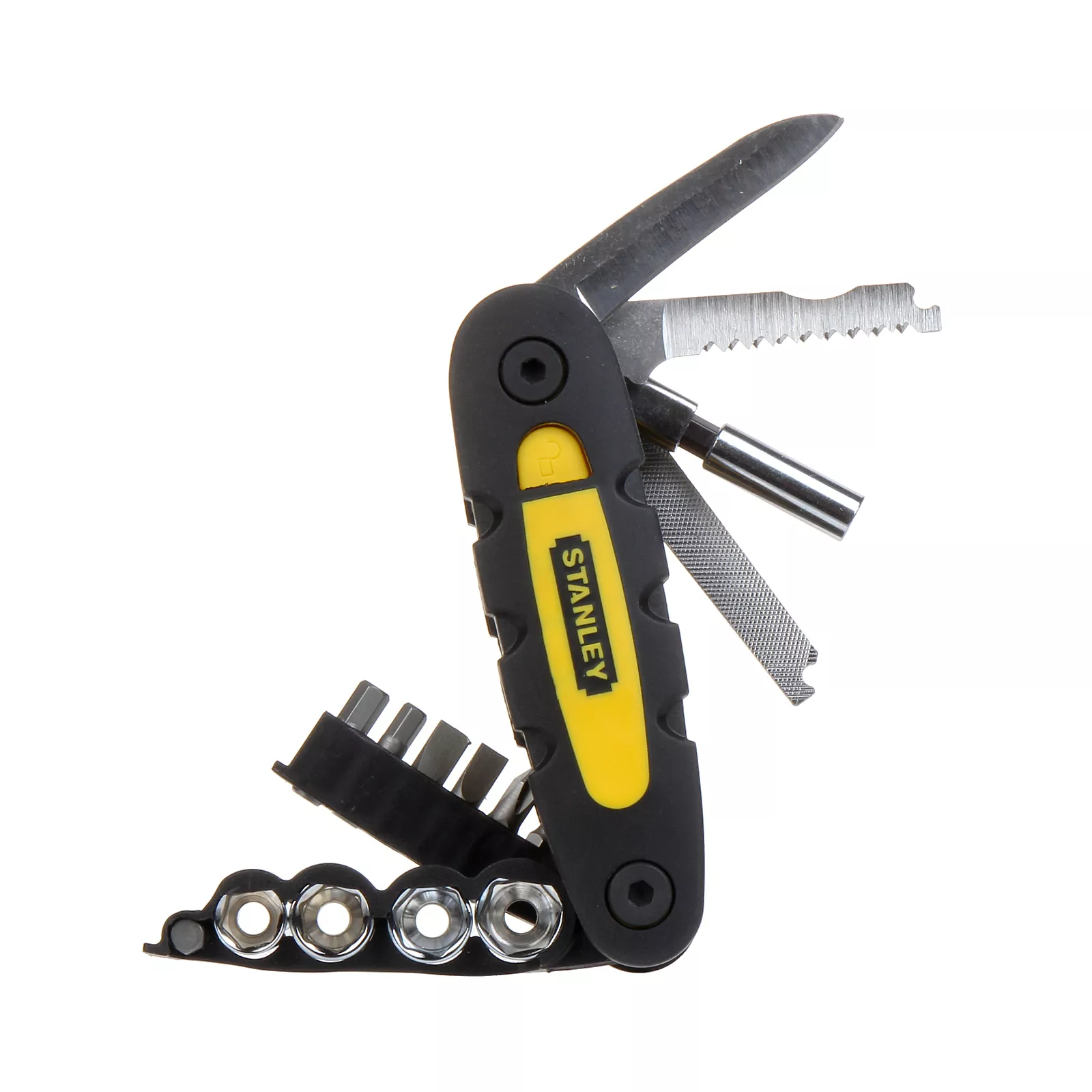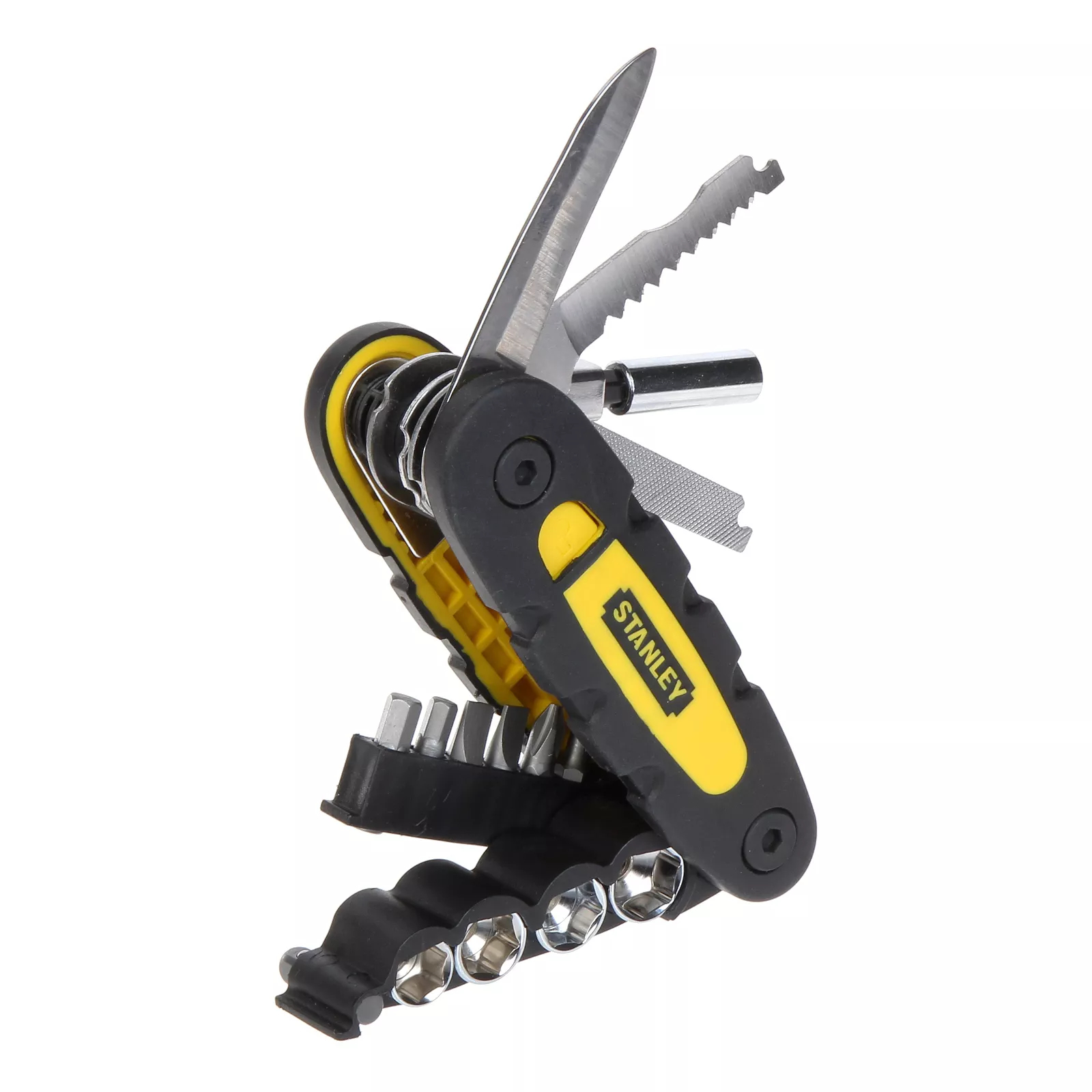 Мультитул Stanley 14 в 1 ообъединяет в одном корпусе сразу 14 инструментов: нож, пилу, держатель бит, напильник, 6 бит-насадок, 4 торцевые головки. Позволят решить многие задачи при проведении ремонтных работ, строительстве./li>