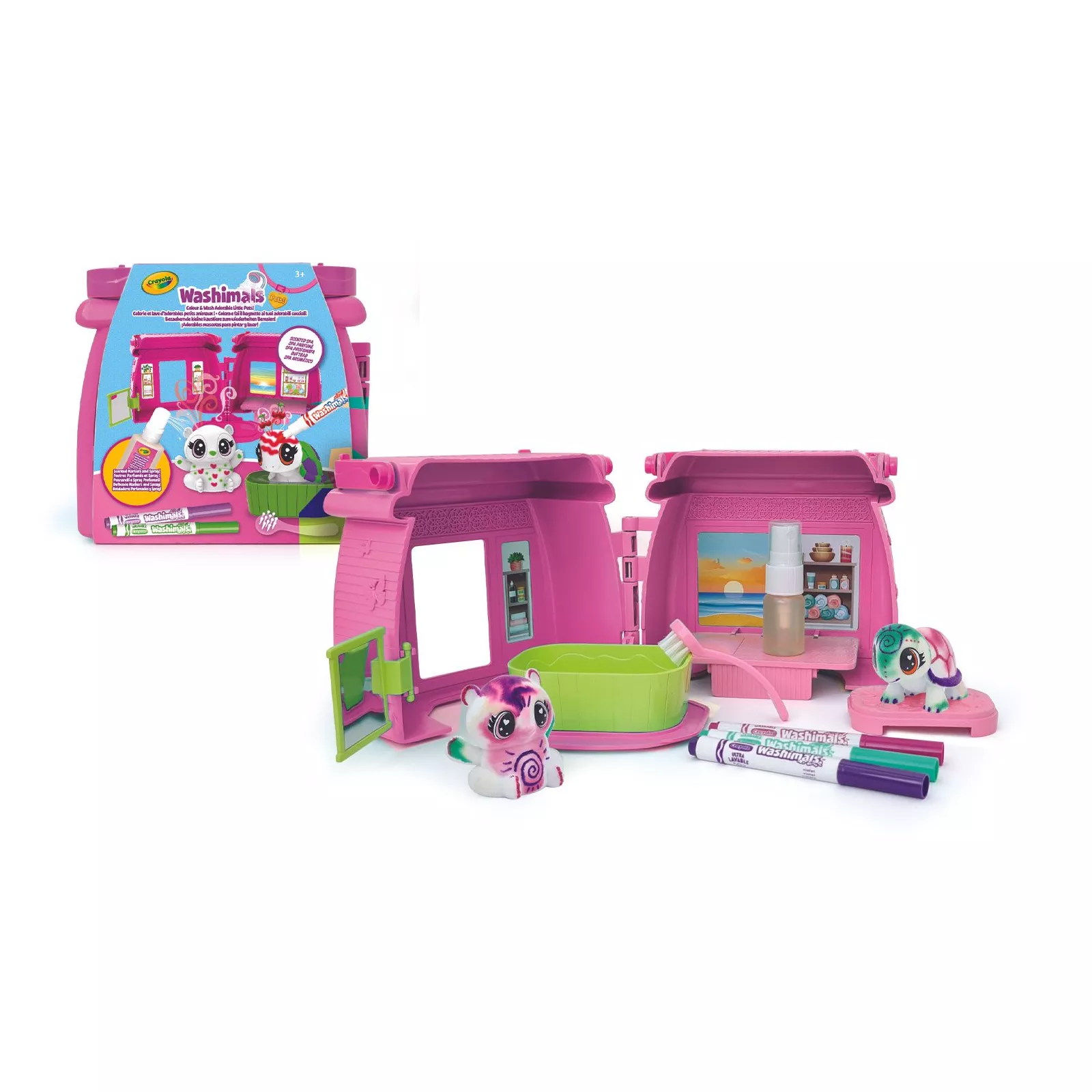 | Комплектация | 1 ароматизированный спрей, 1 кейс с ручками (также является местом хранения), 1 пластиковая ванна, 1 щетка, 2 животных, 3 смывающиеся маркеры |