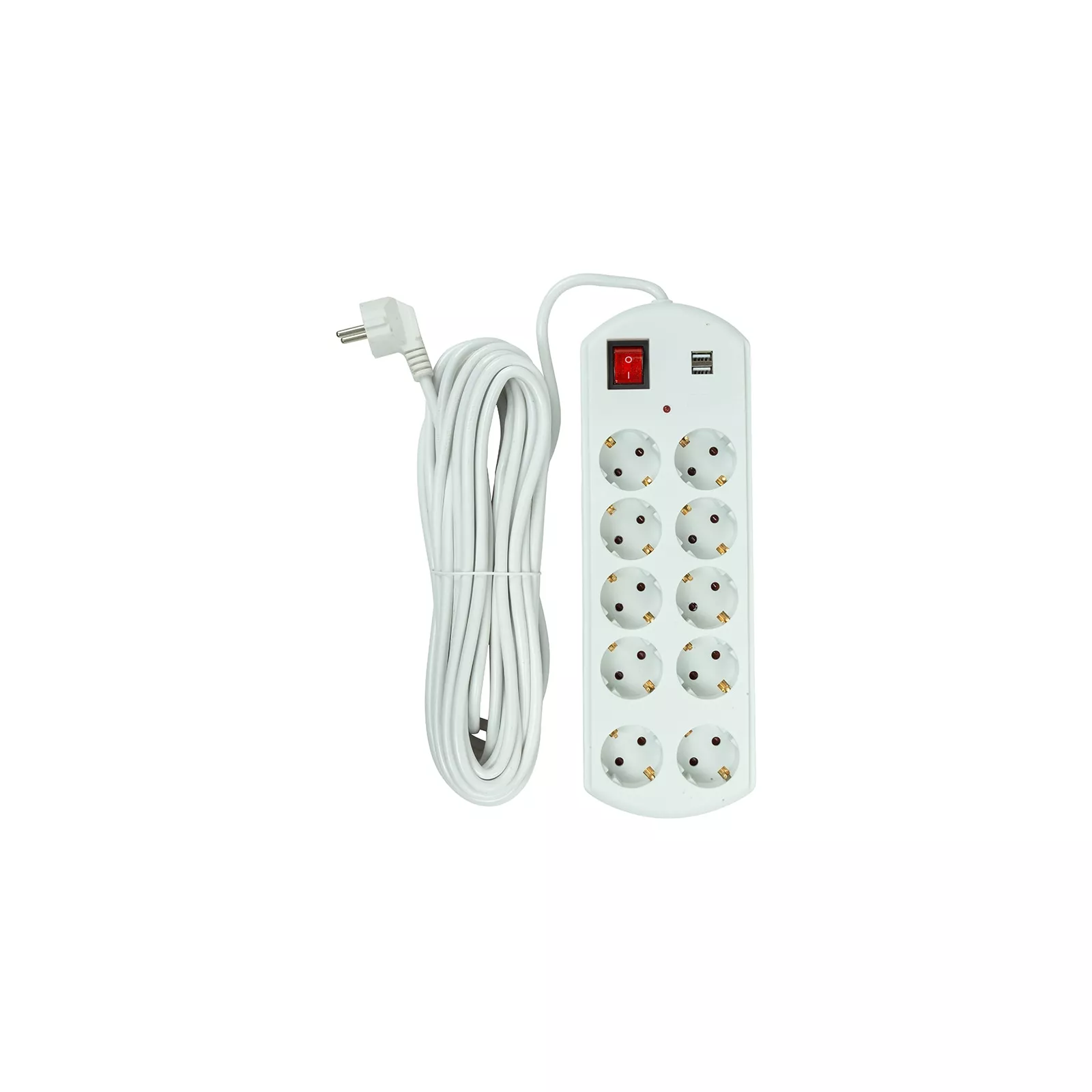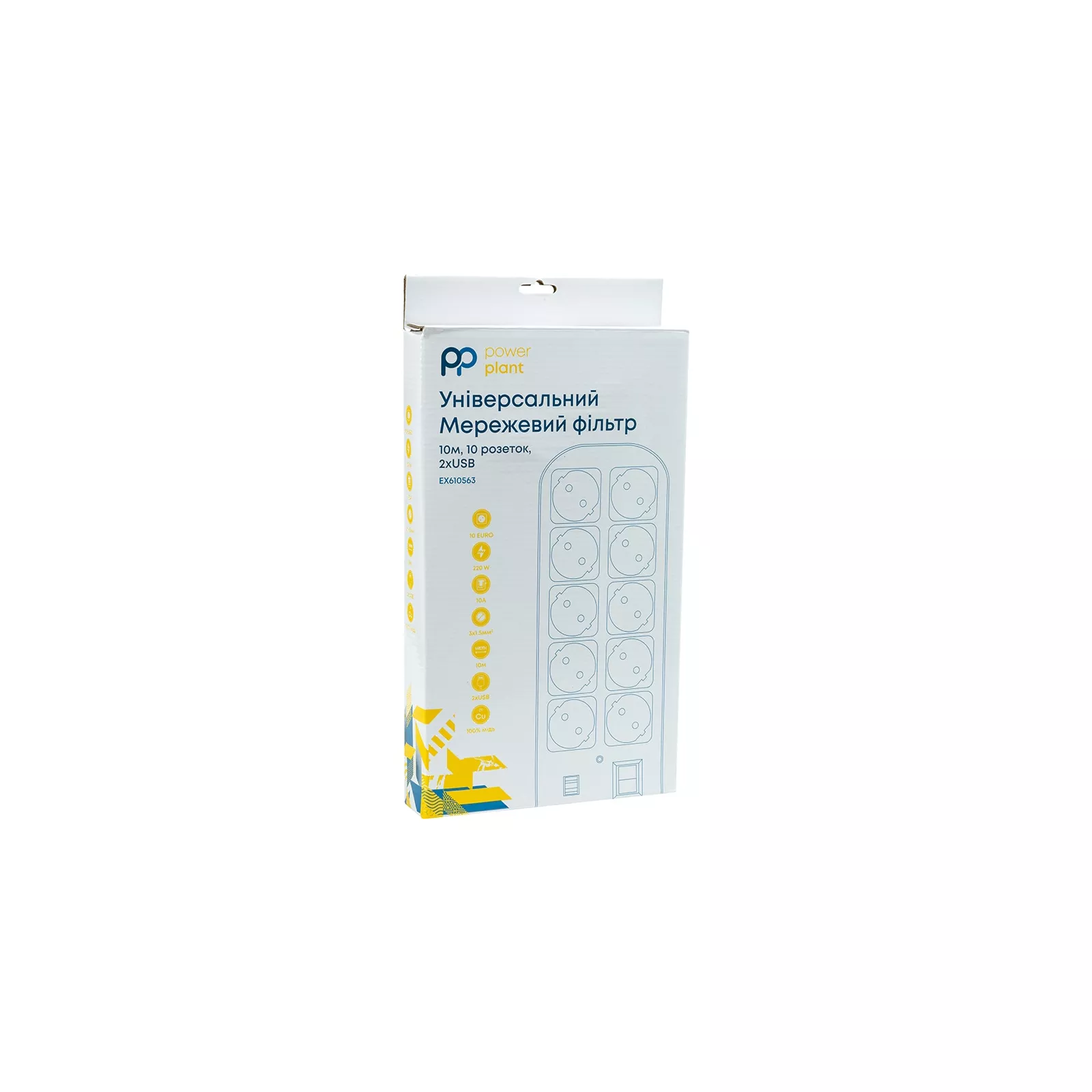 Сетевой фильтр на 10 розеток и 2 USB порта предназначен для подключения широкого спектра компьютерной, бытовой и электронной техники к электрической сети переменного тока с номинальным напряжением не более 250В и номинальным током не более 10А. Кабель длиной 10 м позволит подключить технику в отдаленных от стационарных розеток местах. Изоляционный материал H05VV-F и проводники из 100% меди гарантируют высокую стойкость к температурам и механическим повреждениям, а также максимальную электропроводность и стойкость к нагрузкам. Корпус сетевого фильтра изготовлен из огнестойкого пластика. Фильтр оснащен и укомплектован универсальными розетками евростандарта с заземлением. Надежный и удобный удлинитель защитит электронную технику от короткого замыкания и перепадов напряжения. Фильтр PowerPlant станет отличным помощником в доме, офисе или на даче. Технические характеристики: Название: Фильтр PowerPlant 10м, 3x1.5мм2, 10А, 10 розеток, 2xUSB, евро, 100% медь (YS-N6065/10).