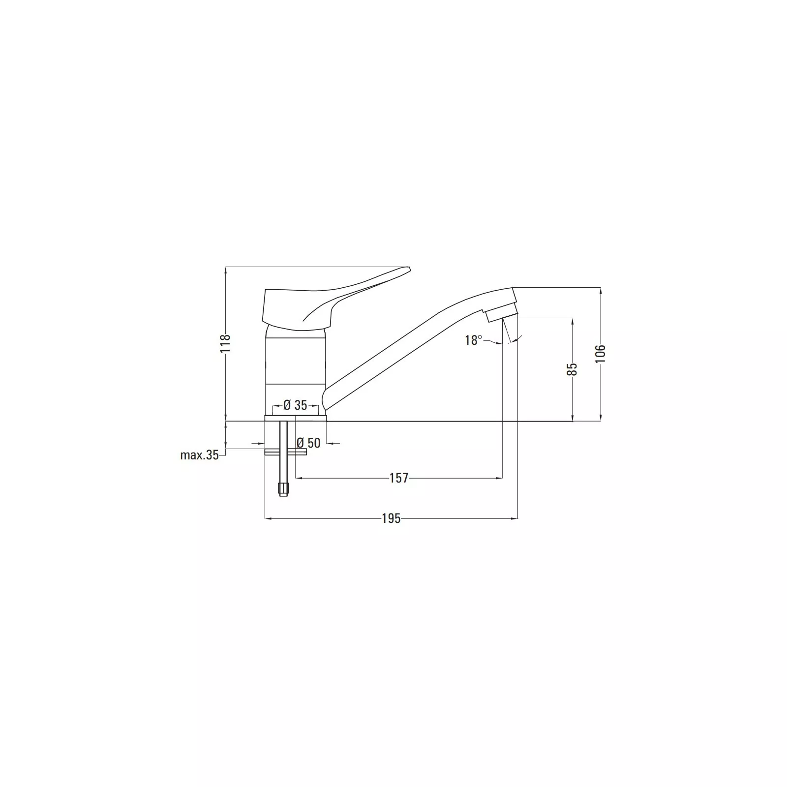 | Посадочный диаметр смесителя | 35 мм |