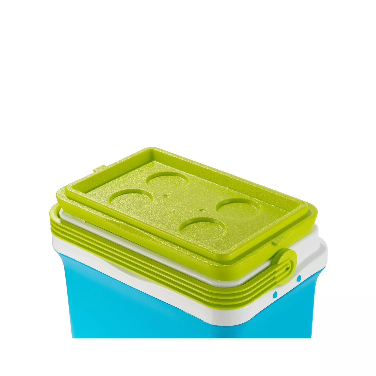 Практический термобокс GioStyle Fiesta 25+ <Предназначен для хранения продуктов питания и напитков в дальних поездках, на охоте, рыбалке, кемпинге, пикниках и в любых других ситуациях, когда необходимо поддерживать прохладу в течение длительного времени. За счет плотного слоя термоизоляции термобокс Гиостайл Фиеста 25+ поддерживает низкую температуру в течение 14 часов при использовании аккумуляторов холода. , а также полностью безопасен для продуктов питания даже при непосредственном контакте. Полезный объем камеры составляет 24,5 литра – этого достаточно для размещения провизии сразу на несколько человек.