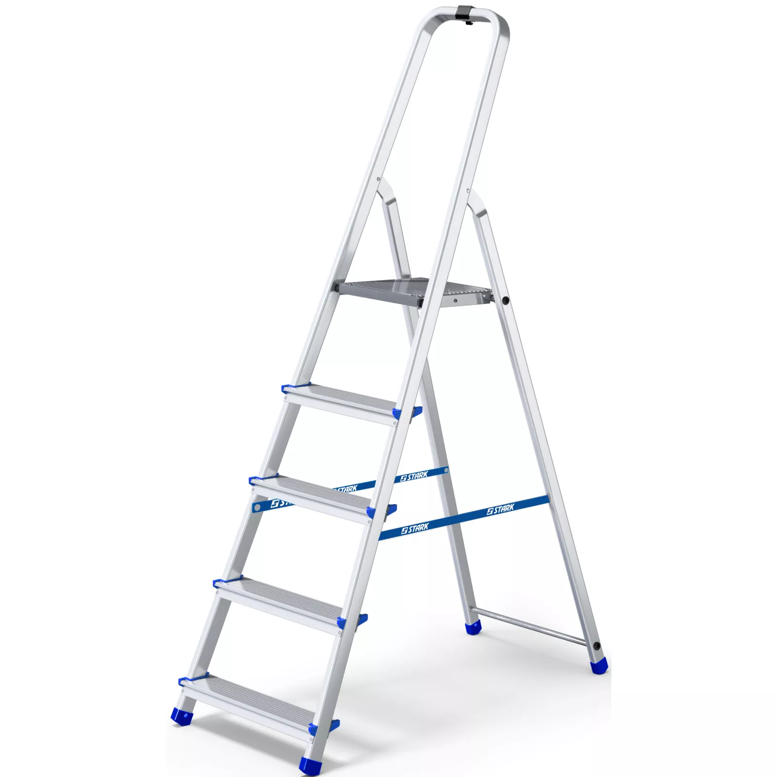 STARK SALW 505 HOME – 5-ступенчатая односторонняя алюминиевая стремянка. Оптимальная модель для домашнего и полупрофессионального использования. Обладает следующими характеристиками: