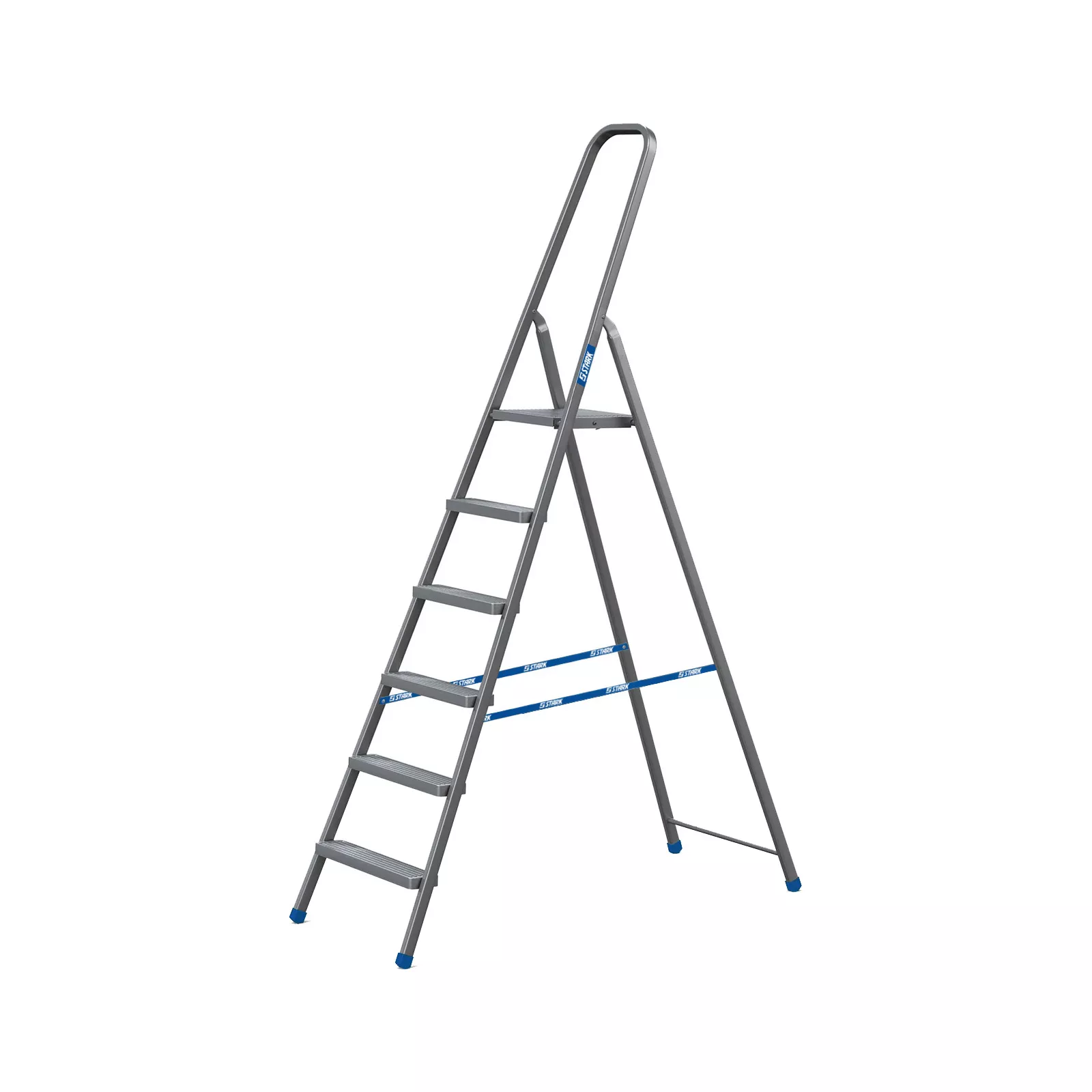 STARK SSLW 506 HOME – 6-ступенчатая односторонняя стальная стремянка. Оптимальная модель для бытового и полупрофессионального использования. Обладает следующими характеристиками: