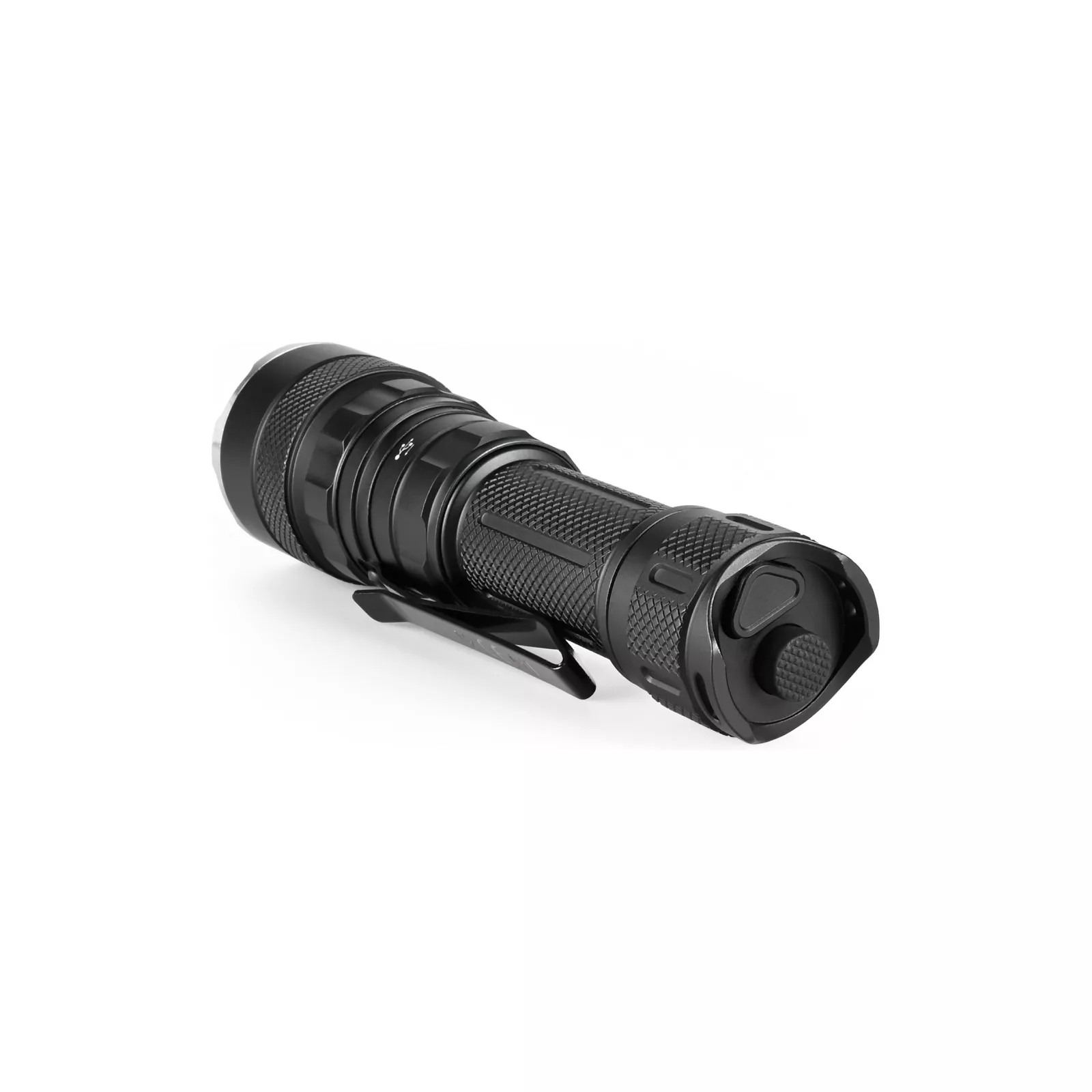 MOON. Яркость данного режима настроена на уровне 10 люмен. Этого будет достаточно для того, например, чтобы проверить карту, и при этом оставаться относительно незаметным.-мгновенная активация стробоскопа с помощью функциональной кнопки. В отключенном состоянии нажмите и удерживайте треугольную кнопку для быстрого доступа к STROBE. Во включенном состоянии нажмите и удерживайте кнопку в течение 0.5 секунды, чтобы активировать постоянный режим STROBE. Стробоскоп с изменяющейся частотой мигания имеет больший эффект дезориентации по отношению к вашему объекту.-Стабилизация светового потока: система стабилизации светового потока состоит из температурного датчика (индикатора)а и контроллера. Она обеспечивает максимальную ровную яркость без колебаний, при этом поддерживая безопасный уровень температуры для всех компонентов, включая аккумулятор.