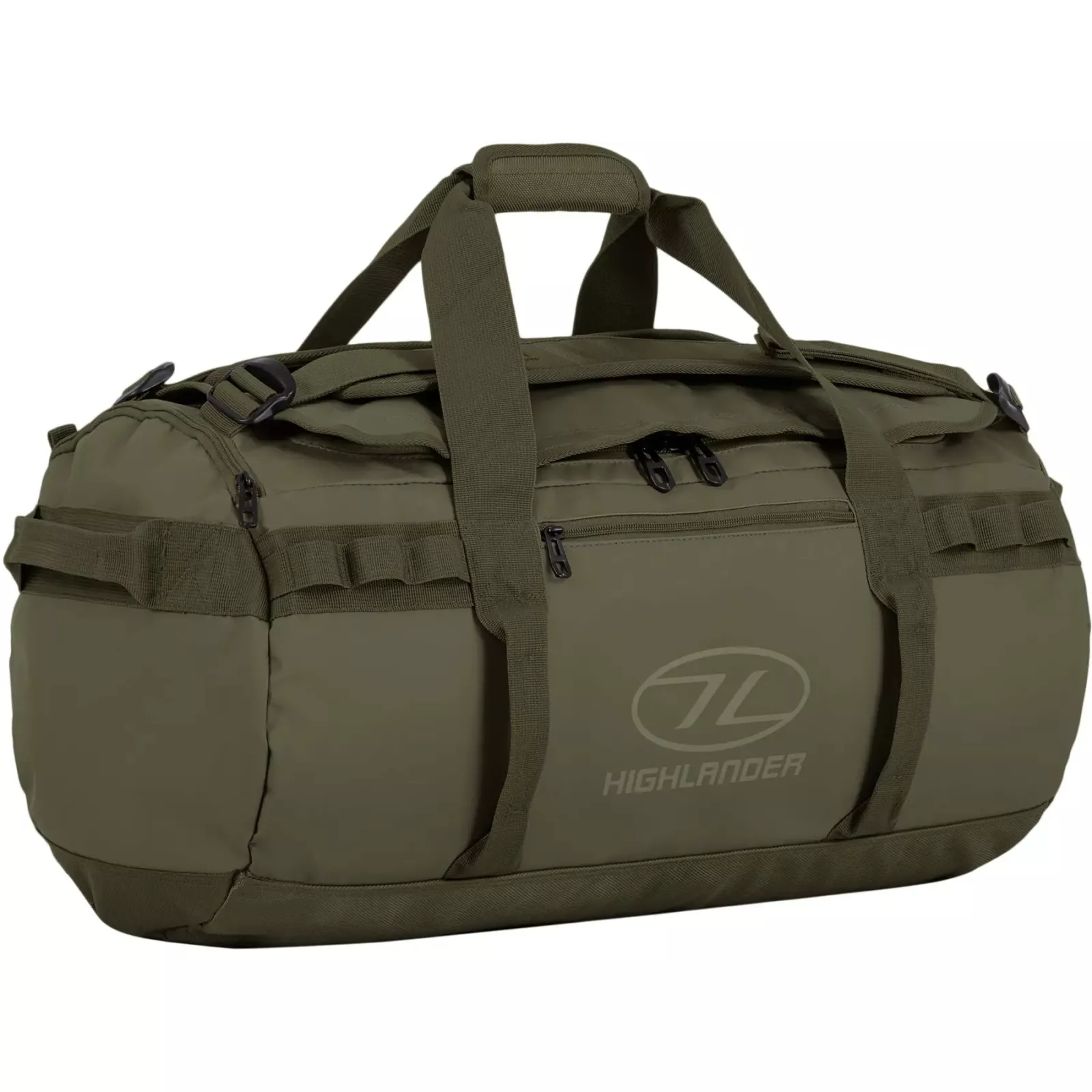 Highlander Storm Kitbag — это крепкая и надежная сумка-рюкзак из износостойкого материала для сложных задач, транспортировка тяжелой клади, экспедиций и многократных поездок в любую погоду, когда нужно сохранить вещи сухими и невредимыми. Сумка не является 100% водонепроницаемой, однако сшита из водонепроницаемого материала и имеет конструкцию, препятствующую проникновению влаги даже в сильный дождь. Когда необходимо быстро перемещаться пешком, эта модель может трансформироваться в рюкзак, благодаря наличию мягких, анатомических бретелек, прячущихся в специальном кармане. Верхние ручки, охватывающие сумку-рюкзак по периметру, а также две пары боковых ручек позволяют транспортировать тяжелую кладь, а также удобнее загружать ее в багажное отделение в транспорте. Такая крепкая вместительная сумка из водозащищенного материала станет находкой для каждого рыбака или любителя водных видов спорта. Особенности: Надежная защита поклажи благодаря использованию водонепроницаемого и износостойкого материала