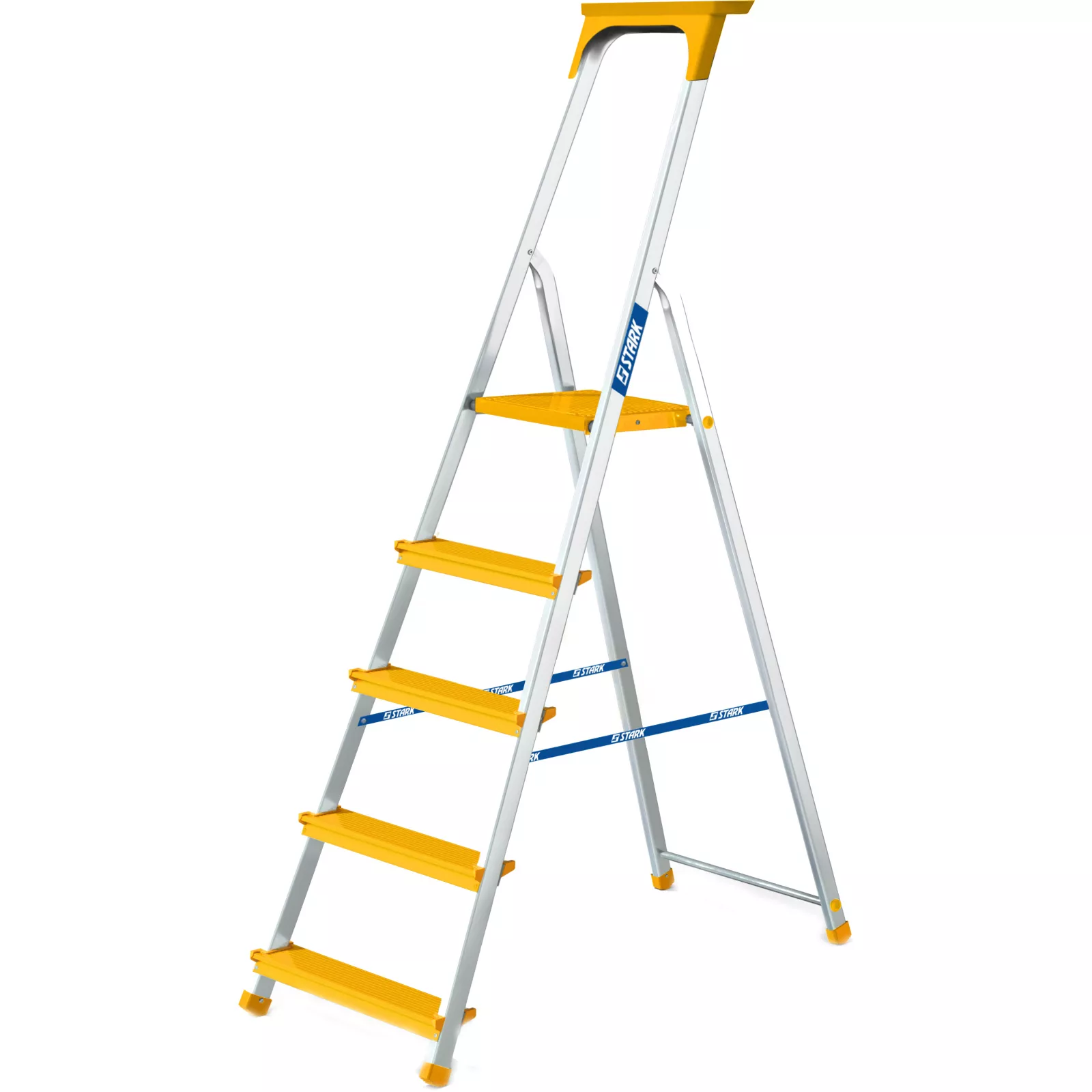 STARK SALT 505 PRO– 5-ступенчатая односторонняя алюминиевая стремянка желтого цвета. Оптимальная модель для бытового и профессионального использования. Обладает следующими характеристиками: