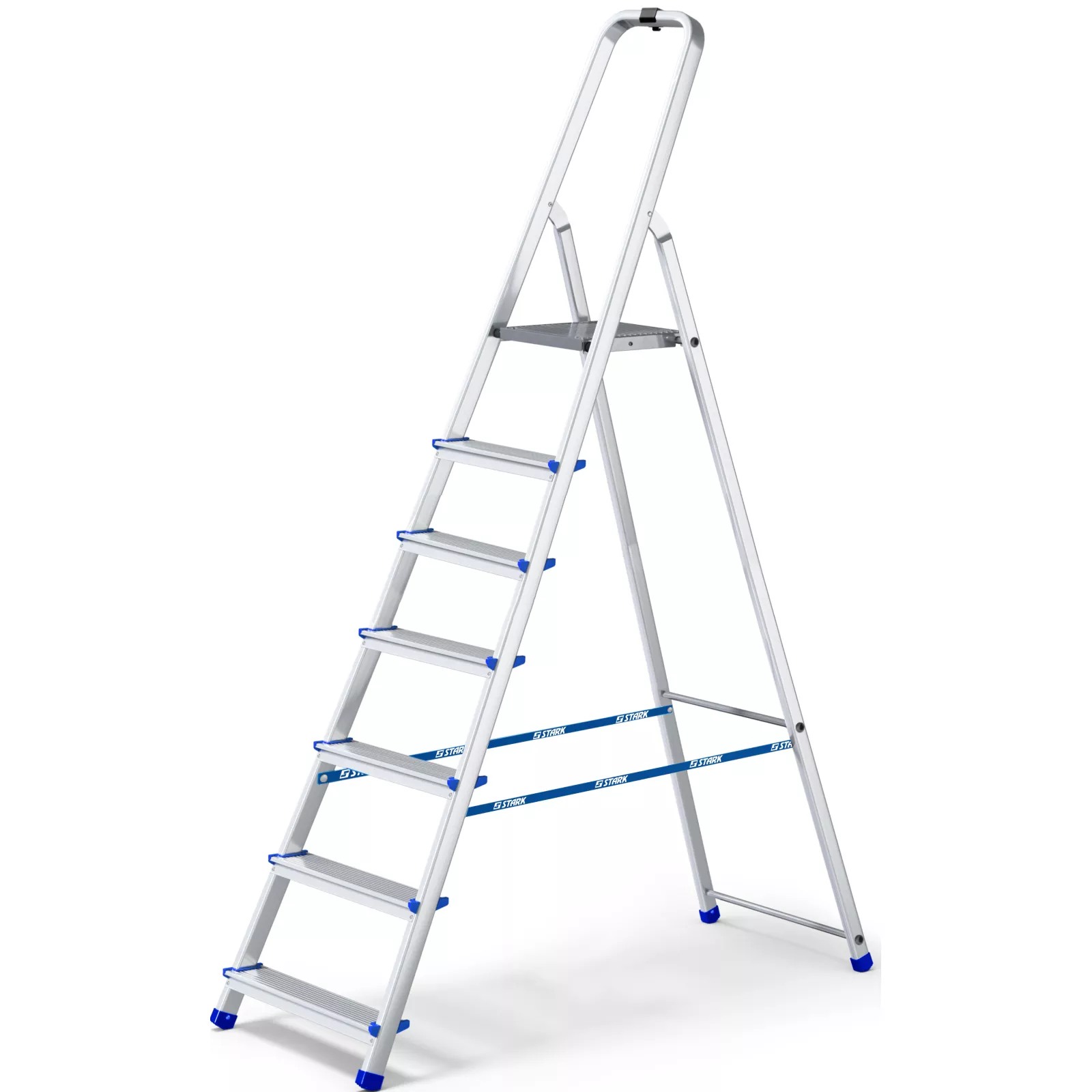 STARK SALW 507 HOME – 7-ступенчатая односторонняя алюминиевая стремянка. Оптимальная модель для домашнего и полупрофессионального использования. Обладает следующими характеристиками: