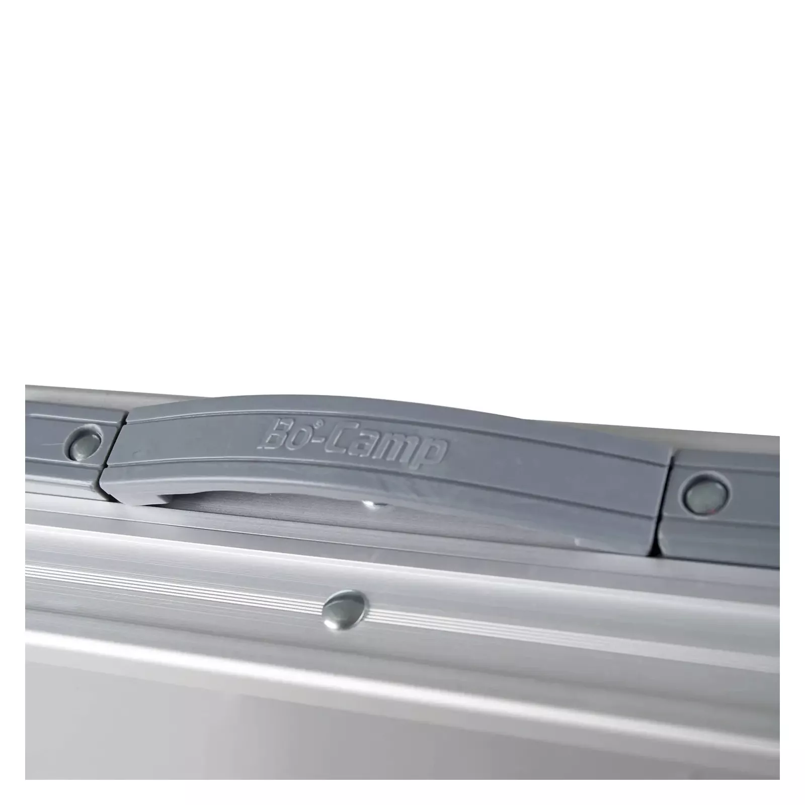 Термостойкая и водостойкая столешница позволяет использовать этот стол по назначению, не беспокоясь о том, что его поверхность будет повреждена горячей или мокрой посудой. Стол имеет две возможные высоты установки, а также микрорегулировку каждой ножки для того, чтобы выставить столешницу горизонтально на неровной местности. Bo-Camp Premium 60x45 cm в сложенном виде представляет собой наиболее плоскую модель производителя, что делает его удобным при хранении. Для удобства транспортировки предусмотрена пластиковая ручка. Раскладной стол Bo-Camp Premium 60x45 cm – компактный кемпинговый столик для небольшой компании или семьи из четырех человек.