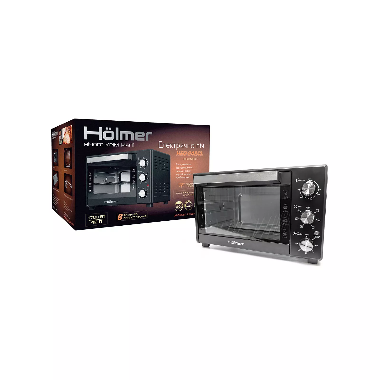 Электрическая печь H?lmer HEO-242CL проста в уходе и эксплуатации, устанавливается на любую ровную поверхность. Работает от сети 220 В, длины шнура в 1 м вполне достаточно для удобного размещения на кухне и комфортной работы.