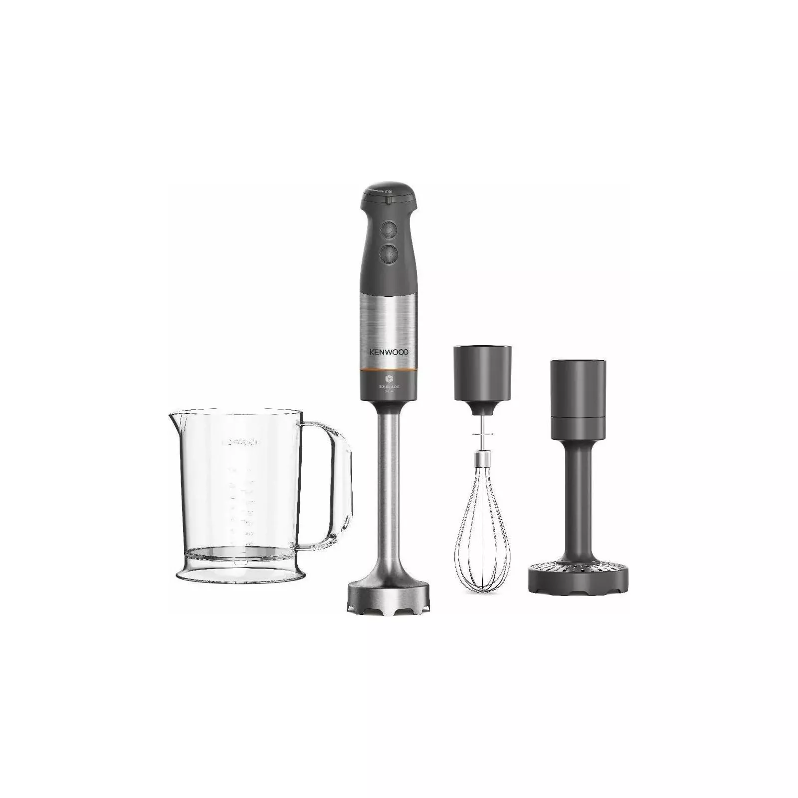 Погружной блендер. Комплектация: металлическая нога с лезвием Triblade TM, венчик из нержавеющей стали, мерная чаша объемом 0,7л, насадка для пюре. Мощность: 1000 Вт. Регулируемая скорость и режим Турбо. Материал: пластик. Цвет: серый.