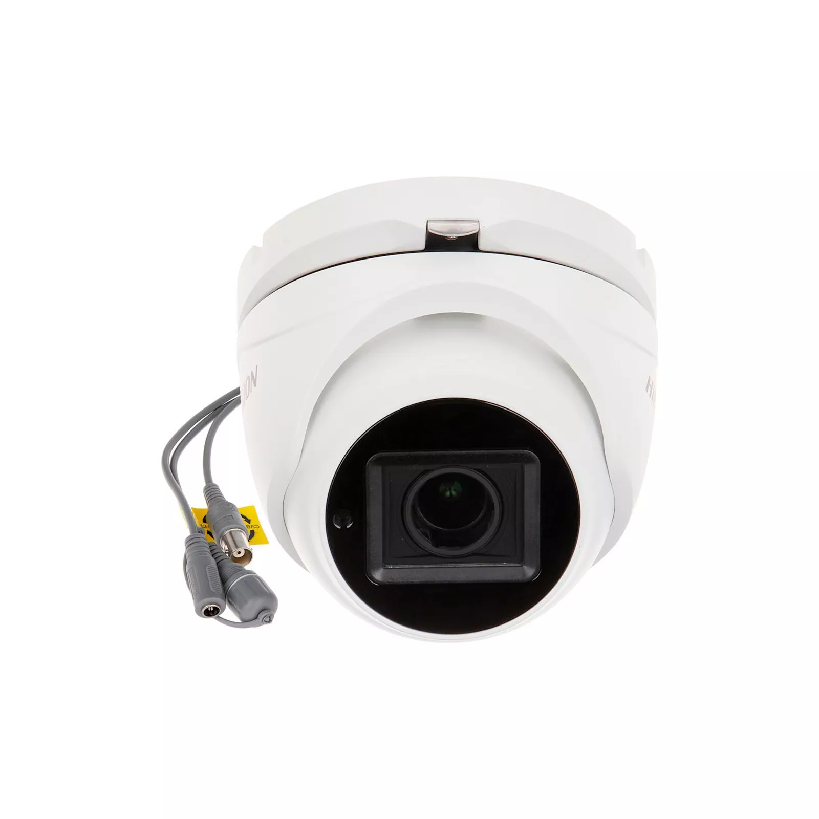 При выборе современных камер наблюдению больше внимания уделяется качеству съемки. Обеспечить лучшее изображение способно DS-2CE76U1T-ITMF. Здесь есть усовершенствованная ночная подсветка и передача в 4K. Широкоугольный объектив снимает при стабильных кадрах на 8 мегапикселей. При этом разрешение на мониторе наблюдения достигает 3840x2160, что позволяет комфортно наблюдать за происходящим. Съемка во тьме сопровождается активацией инфракрасного вспомогательного фильтра с технологией EXIR. В отличие от классического ИК-улучшения, здесь получается гораздо более четкая и более светлая картинка на весь экран. Без затемненных краев. Также в DS-2CE76U1T-ITMF встроена регулировка усиления и подавления ярких лучей. Подключается видеокамера через аналоговый выход.