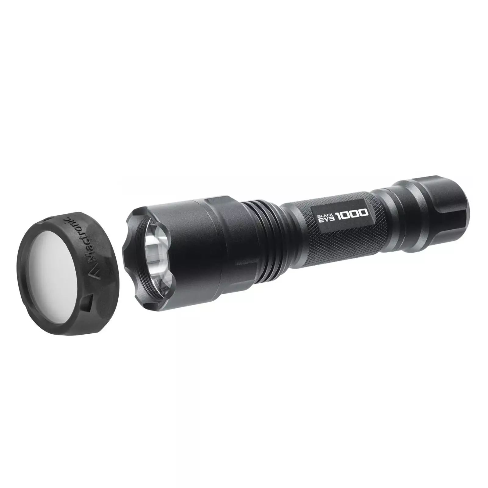 Модель Mactronic Black Eye 1000 имеет все современные защитные системы, позволяющие уберечь фонарь от короткого замыкания, перегрева, механических повреждений или попадания влаги внутрь. Корпус этой модели выполнен из анодированного алюминия, обеспечивает защиту по стандарту IP65 (защиту от пыли и водяных потоков из любого направления) и ударопрочность при падении с высоты до 1.5 м на бетон. То есть фонарь не боится проливного дождя и случайного падения. качественным темляком.
