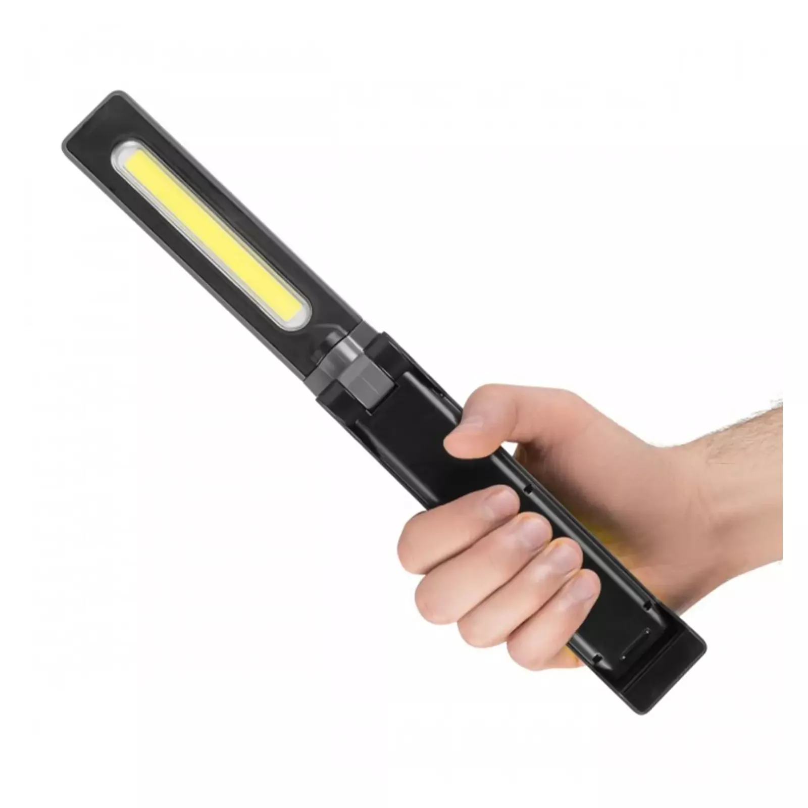 Фонарь оборудован яркой световой COB панелью, создающей широкий заливной луч предназначенный для освещения рабочей зоны. Конструкция фонаря позволяет проворачивать световую панель в разных плоскостях и направлять свет именно туда, где он требуется. Мощный магнит, плоское основание и два крючка для подвешивания помогут разместить FlexiBEAM именно тем, где вам нужно. Дополнительно на торце фонаря установлен направленный светодиод, чтобы осветить труднодоступные места отсека автомобиля или заглянуть под диван. Встроенного аккумулятора объемом 3350 мАч хватит до 8 часов работы COB панели или до 14 часов работы направленного светодиода. В сложенном виде Mactronic FlexiBEAM имеет компактные размеры и сможет поместиться в карман сумки или рюкзака.