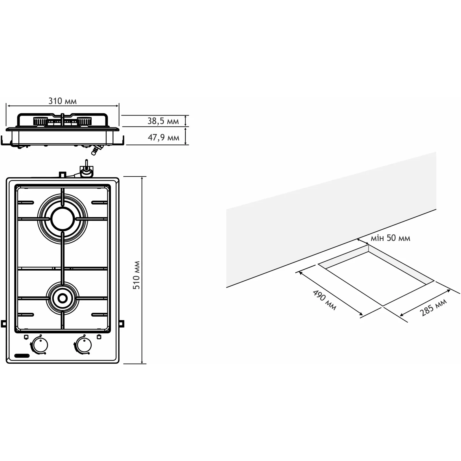 | Диаметр и мощность конфорок | Задняя 2.5 кВт, Передняя 0.9 кВт |