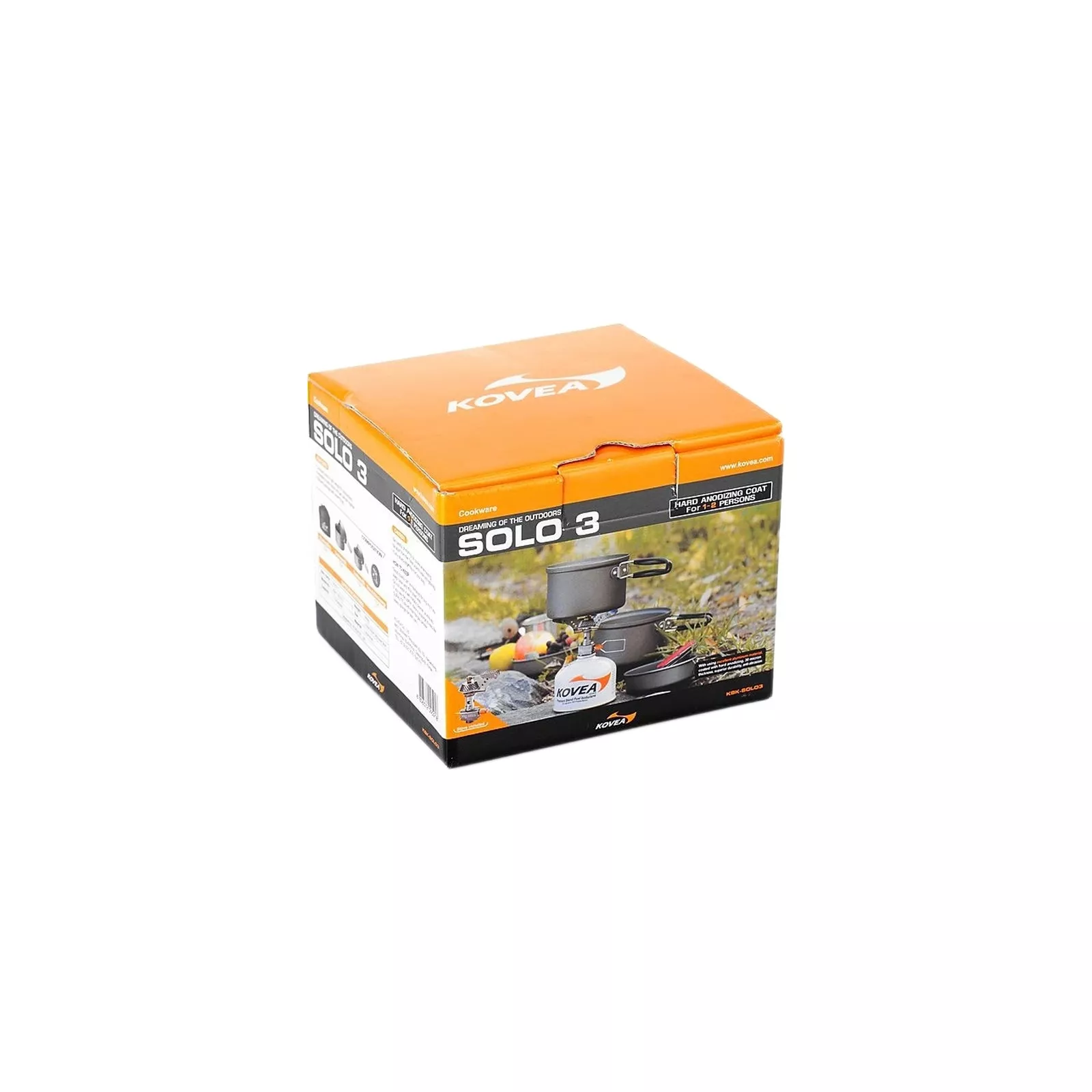 Kovea KSK-SOLO3 Solo 3 – набор легкой производной посуды из анодированного алюминия, рассчитанный на одного – двух человек. Набор состоит из двух котелков объемом 1.2 литра и 0.8 литра. Котелки не имеют пластиковых деталей, в связи с чем их можно легко ставить на открытый огонь или в угле, не опасаясь оплавления и деформации. Анодированный алюминий имеет повышенную теплопроводность, в связи с чем еда готовится гораздо быстрее. Материал также показывает превосходную стойкость перед окислением, даже при длительной эксплуатации.