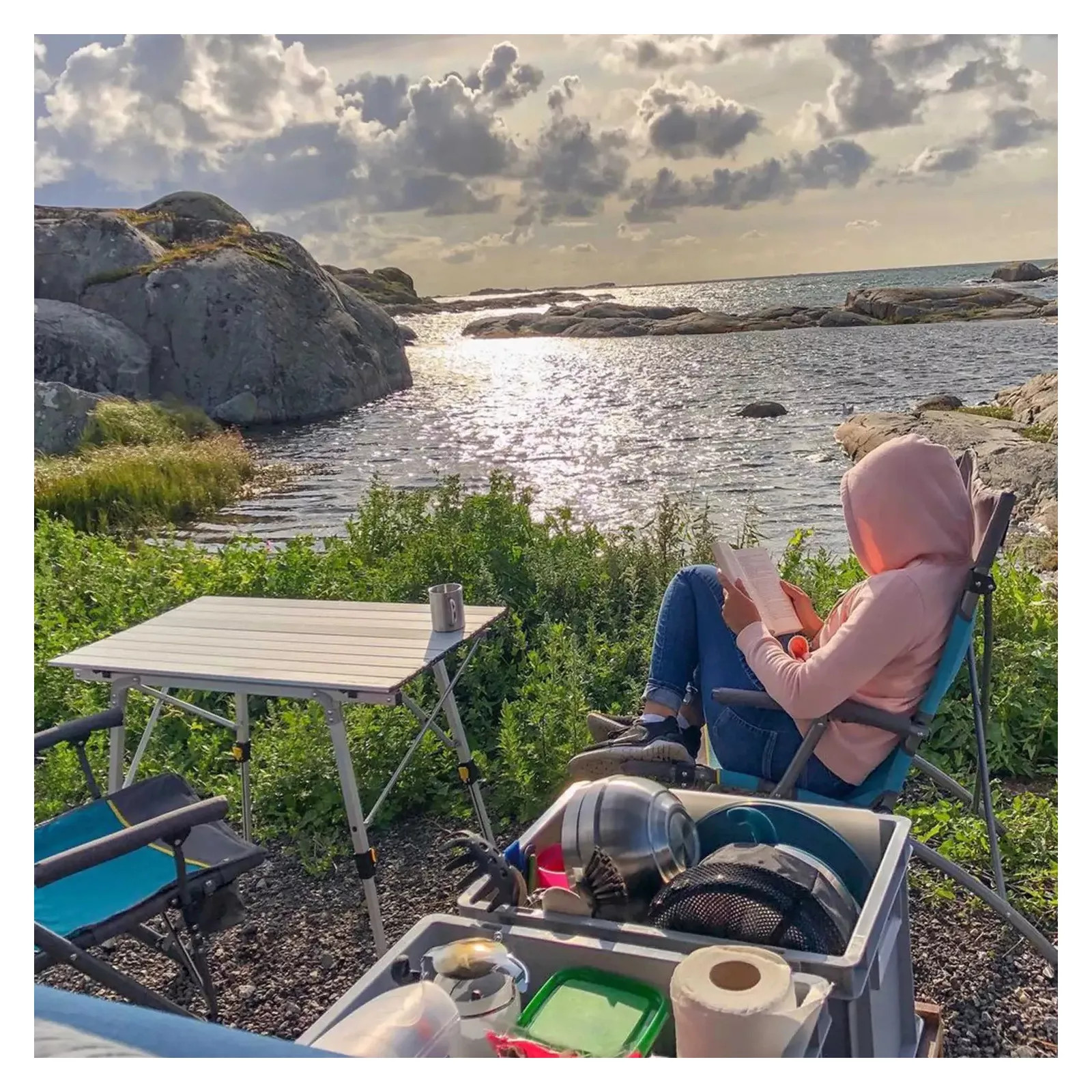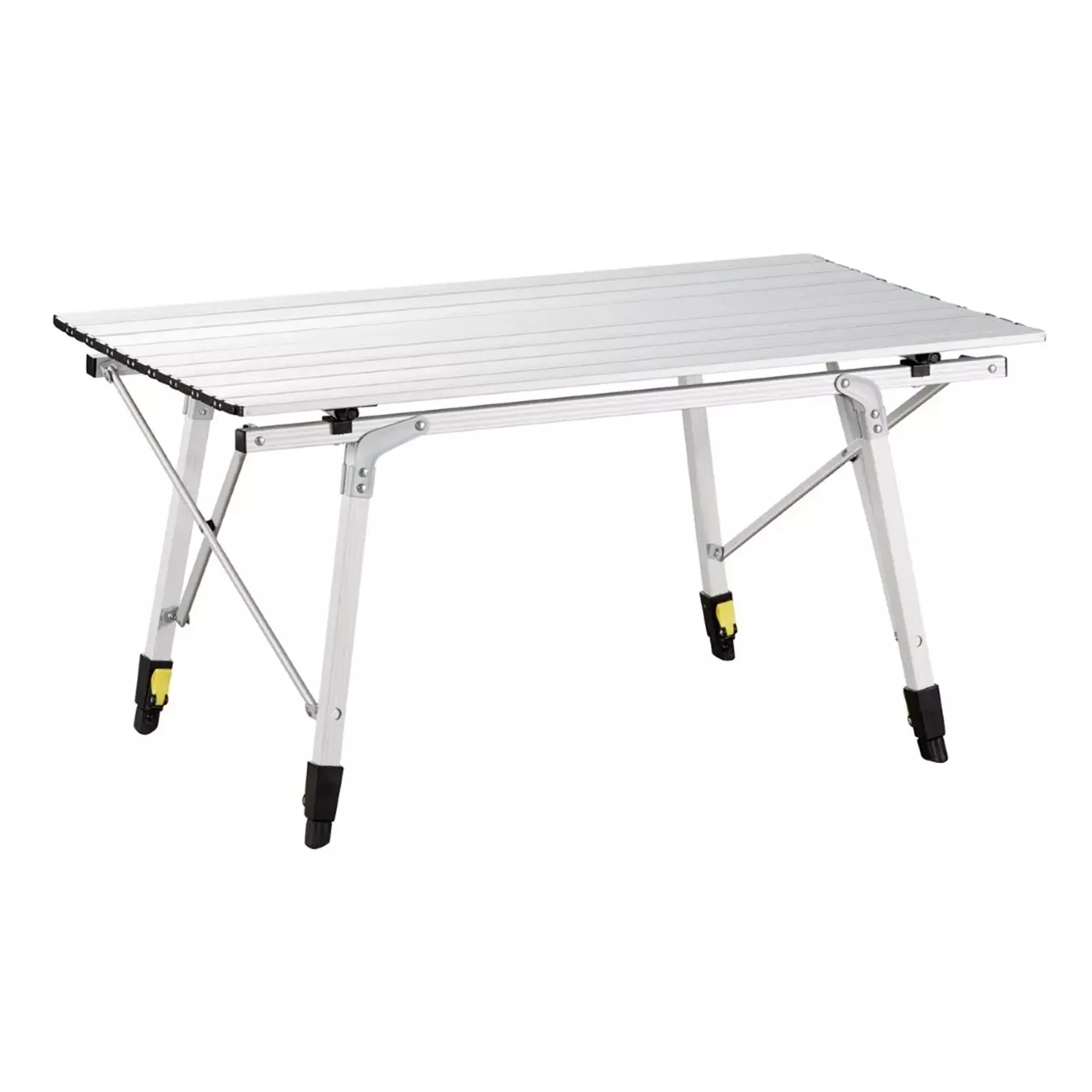 Столешница имеет достаточные размеры, чтобы за столом комфортно разместились 6 человек. В сложенном виде стол компактно размещается в чехле. Алюминиевая поверхность столешницы легко чистится, и является максимально и в полном объеме гигиенической, поскольку алюминий не формирует среду для размножения микробов.