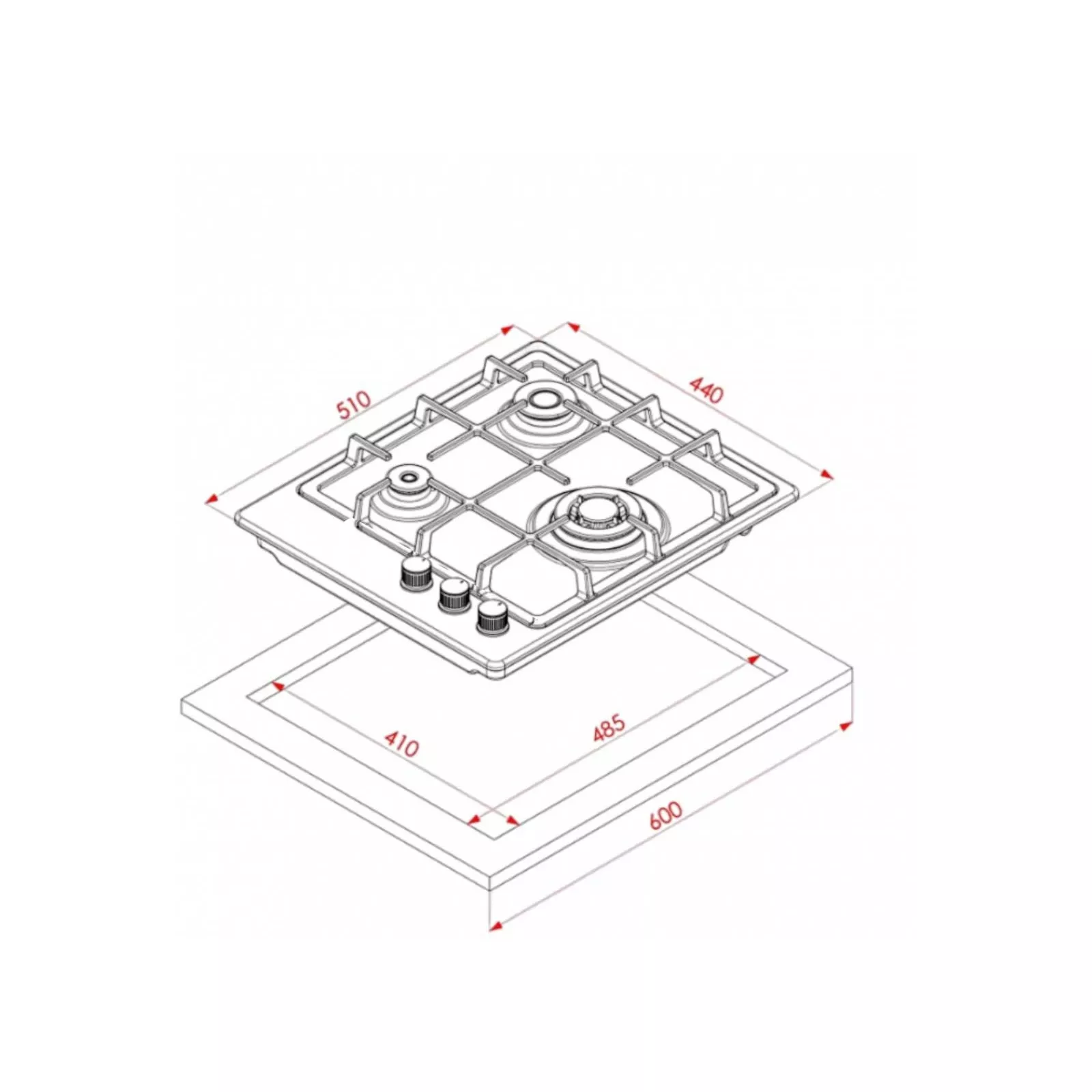 Диаметр и мощность конфорок | Задняя левая 1.7 кВт, Передняя левая 55 мм/ 1 кВт, правая: мощностью 3 кВт |