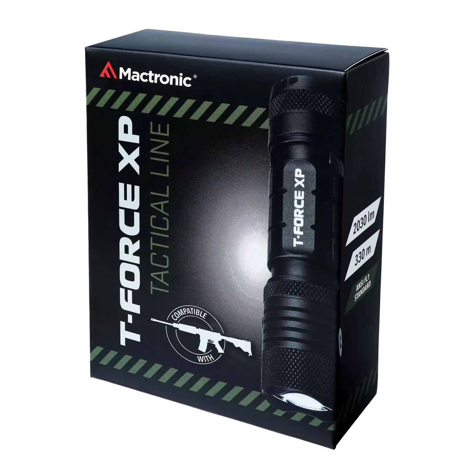 Mactronic T-Force XP имеет все современные защитные системы, позволяющие уберечь фонарь от воздействия мощной отдачи, короткого замыкания, перегрева, механических повреждений или попадания влаги внутрь. Корпус этой модели выполнен из анодированного алюминия, обеспечивает влагозащиту по стандарту IPX8 (выдерживает длительное погружение под воду на глубину более 2 м) и ударопрочность при падении с высоты до 2 м на бетон.