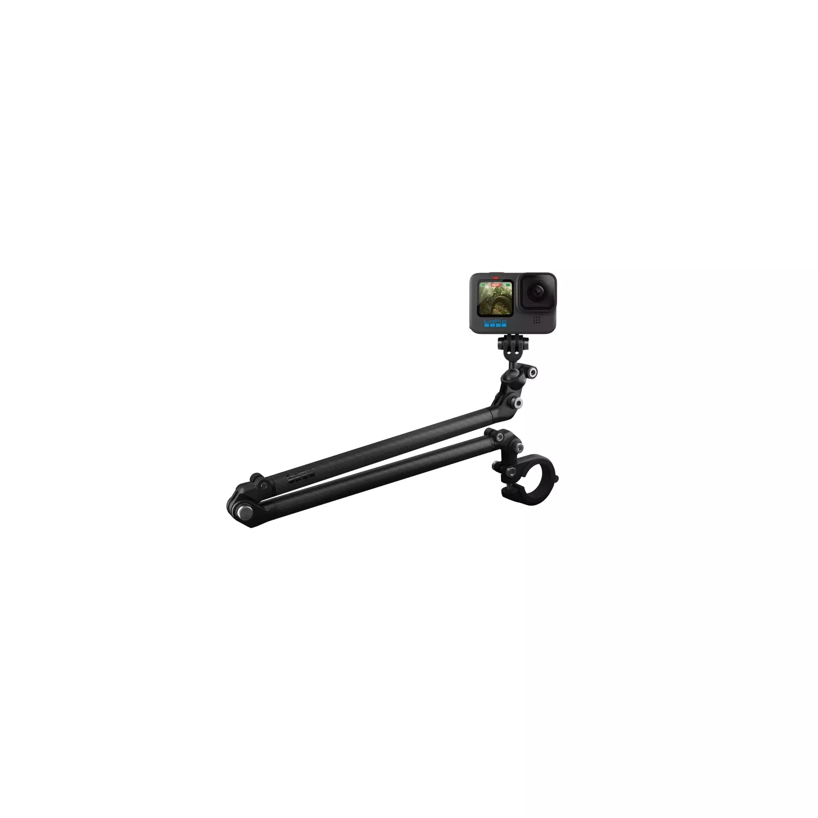 Крепление на трубы GoPro Boom — это легкий штатив из двух кронштейнов, который можно легко и надежно закрепить на руле и подседельном круглом штыре для получения снимков с любого ракурса: спереди, сбоку или в режиме следования. Штатив также имеет встроенные поворотные элементы и шарнирный крепеж для камеры, чтобы вы могли выбрать оптимальный угол съемки.