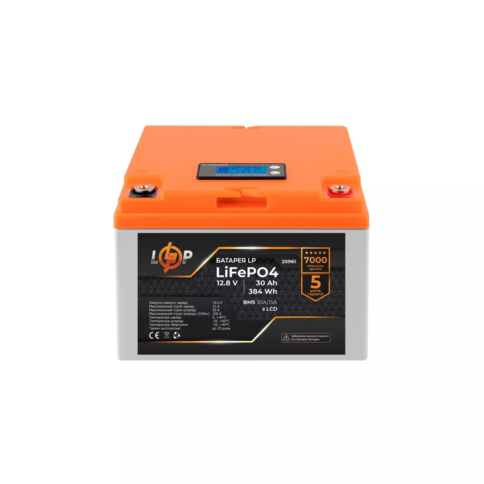<Батарея LiFePo4 LogicPower 12V (12.8V)-30 Ah (384Wh) (20961)