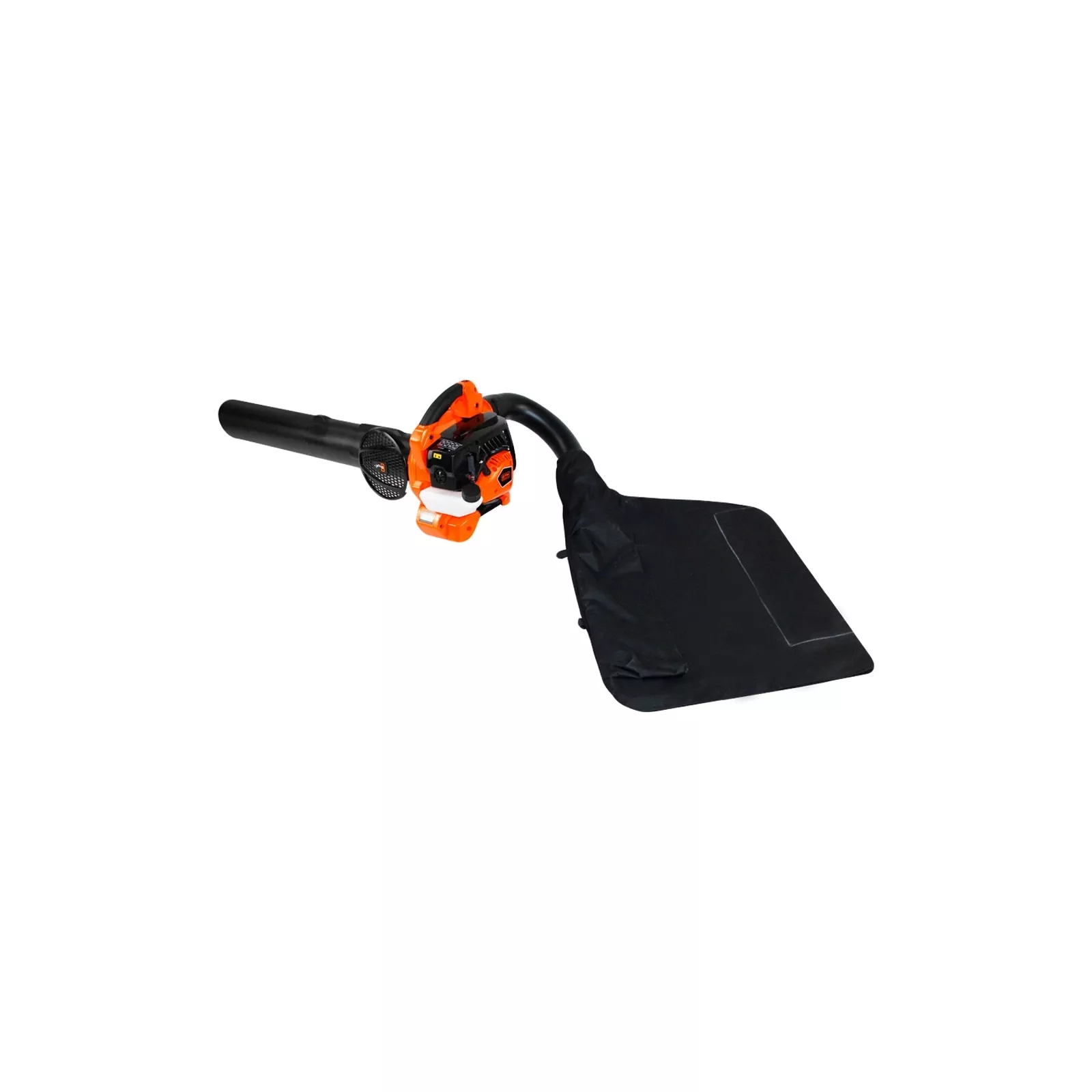 GTM EBV280A-высокопроизводительный садовый воздуходув-пылосмок бытового класса, предназначенный для легких и средних нагрузок при уборке садовых участков от листьев и мусора. Инструмент оборудован 2-тактным бензиновым двигателем с мощностью 0,8 кВт (1,1 л.с), благодаря которому на выходе воздуходув выдает 760 куб.м/ч воздуха со скоростью 253,8 км/ч. Как топливо используется смесь бензина с моторной смазкой в пропорции 40:1 (на 1 л бензина 25 мл смазки).