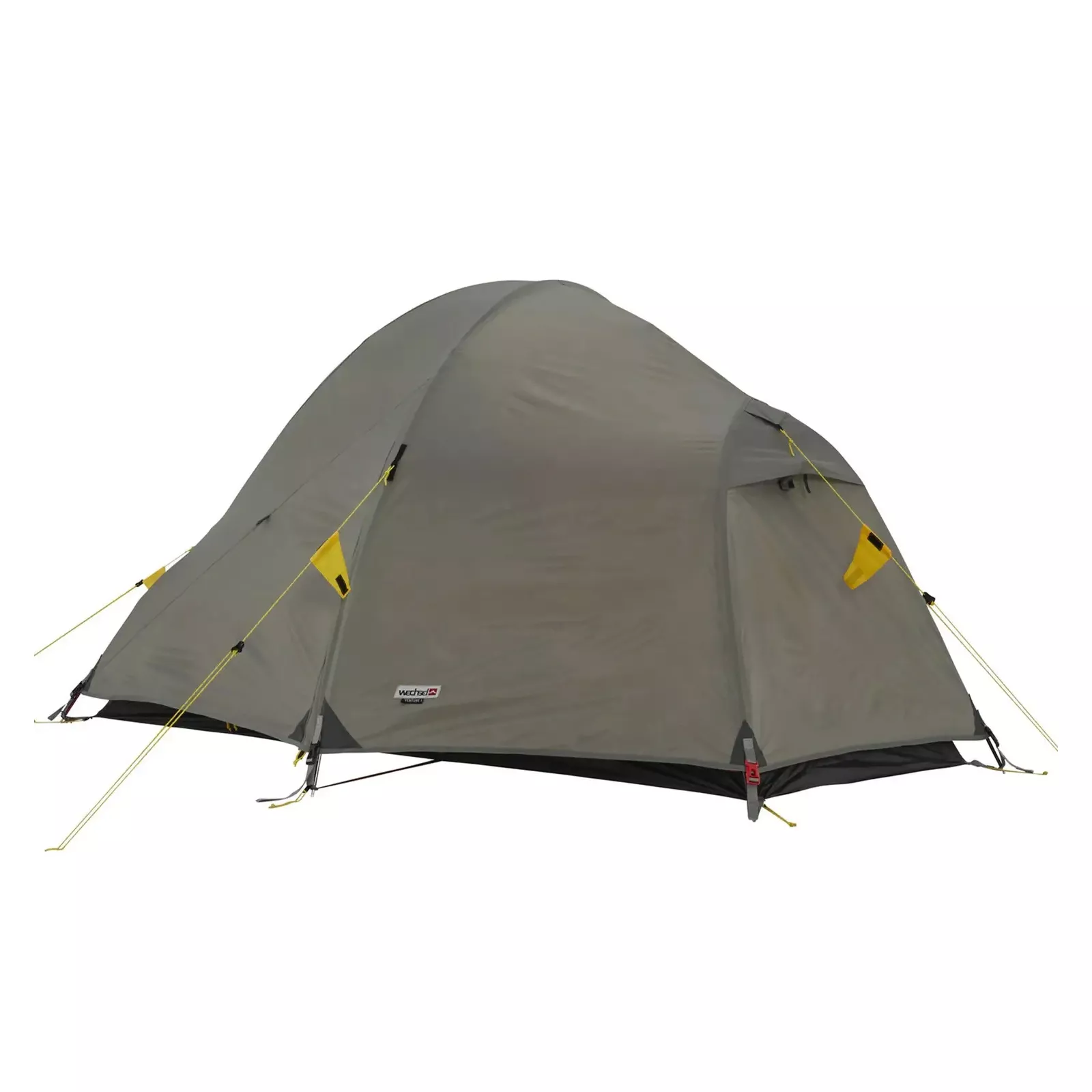 Выбирая компактную одноместную купольную палатку с дополнительным запасом прочности для велопутешествий и одиночных походов, несомненно, стоит обратить внимание на Wechsel Venture 1. Специальная конструкция чехла позволяет наиболее компактным образом упаковать палатку. Каркасы с хабовым соединением дуг, имеющие 4 точки сопротивления в землю, давно используются разными производителями, как альтернатива классической купольной схеме. Однако инженеры Wechsel пошли дальше и усовершенствовали эту конструкцию, добавив центральную дугу и получив 6 точек сопротивления. Благодаря этому решению, палатка получила значительную устойчивость к ветровым и снежным нагрузкам, улучшенное сопротивление намоканию, и увеличенный в объеме тамбур, оставаясь самой легкой палаткой из линейки Travel Line. Такая конструкция позволяет палатке свободно стоять и требует минимум места для установки, т.к. не требует обязательного крепления колышками. пол палатки от повреждений, образует пол в тамбуре, и вместе с внешним тентом и каркасом позволяет использовать палатку как быстрое летнее укрытие. Полиуретановое покрытие пола и тента обеспечивает водозащиту до 7000 мм и высокую устойчивость к проколам, что немаловажно при использовании палатки, как в лесистой, так и на каменистой местности.
