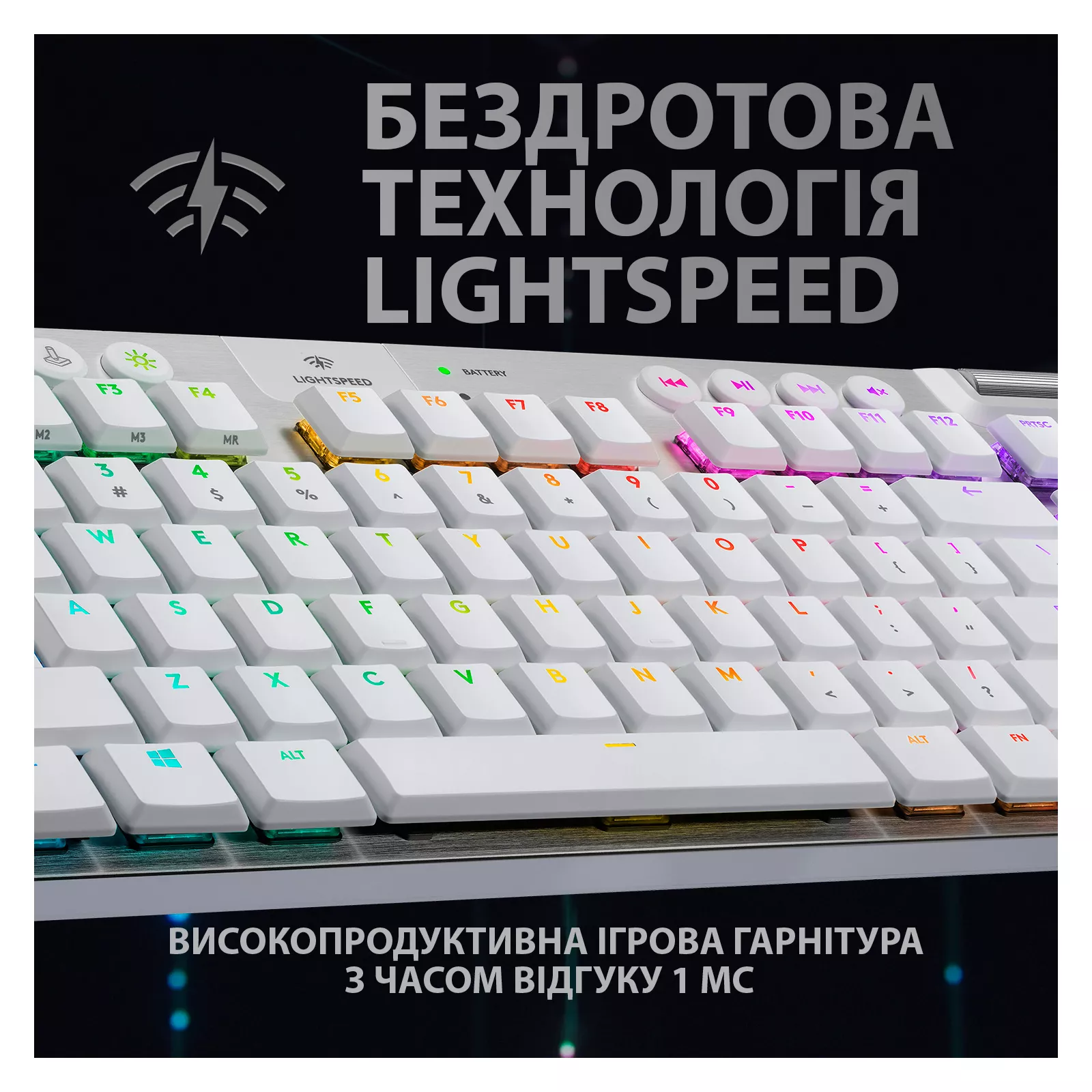 Клавиатура G915 TKL воплотила в себе технологию беспроводной связи профессионального уровня которая обеспечивает невероятную частоту отклика – всего 1 мс. Кроме того, модель G915 TKL сохраняет полную функциональность при подключении через USB-порт, а значит, ее можно заряжать непосредственно во время игры. конструкторское и дизайнерское искусство. Она отличается невероятно тонким корпусом, не уступая по функциональности и техническим характеристикам традиционным аналогам. Таким образом, это прочное и удобное устройство, оптимизированное для длительных игровых сеансов, можно без преувеличения отнести к новому поколению механических игровых клавиатур. в себе интеллектуальную технологию RGB-подсветки LIGHTSYNC, которая позволяет настраивать эффекты подсветки для каждой клавиши, используя палитру из примерно 16,8 млн оттенков. Помимо пользовательских анимационных эффектов, имеется множество эффектов с предварительно заданными параметрами. Это позволяет пользователю полностью погрузиться в атмосферу любимых игр. Подсветку клавиатуры можно синхронизировать с подсветкой других устройств и настроить так, чтобы она максимально и в полном объеме соответствовала стилю и динамике игры.