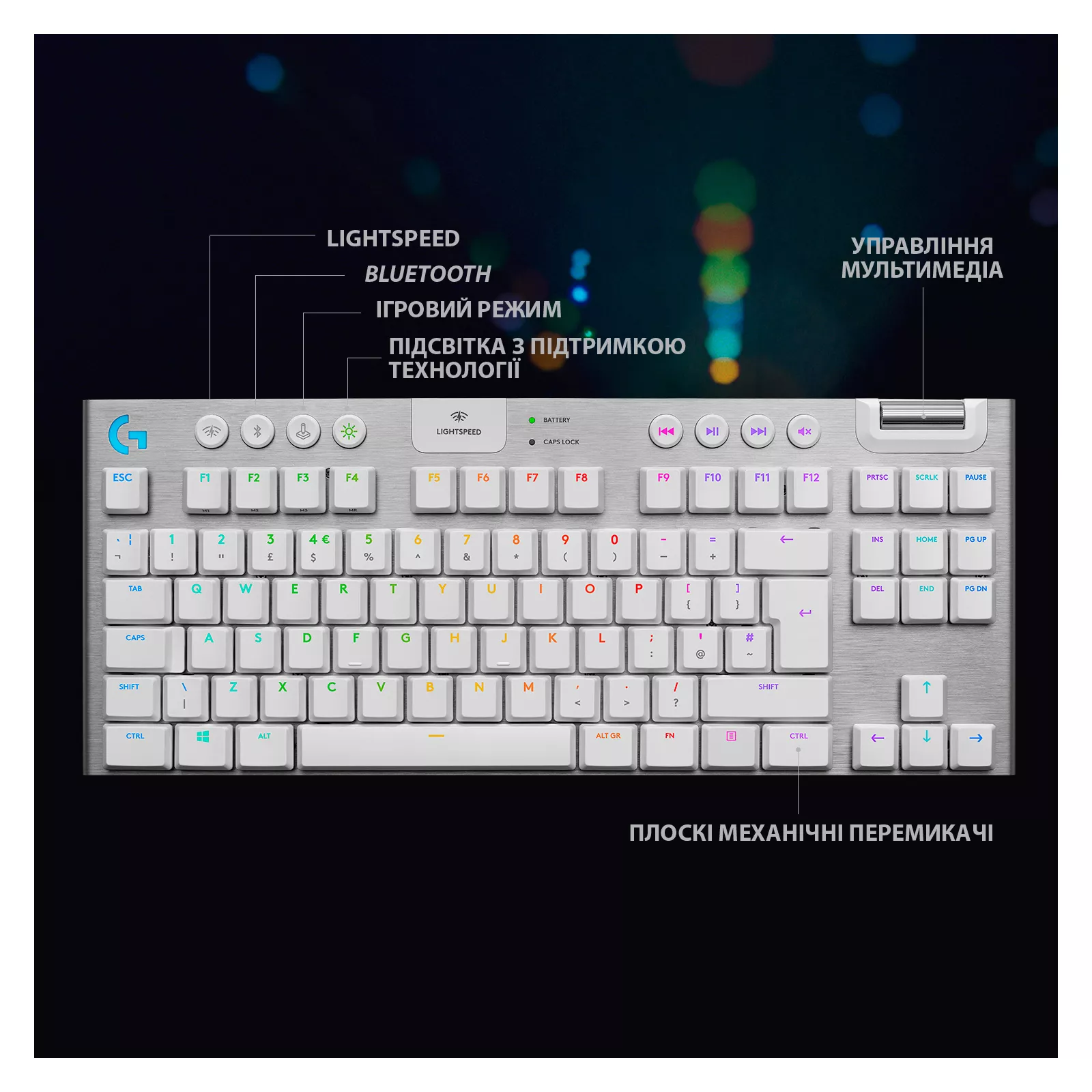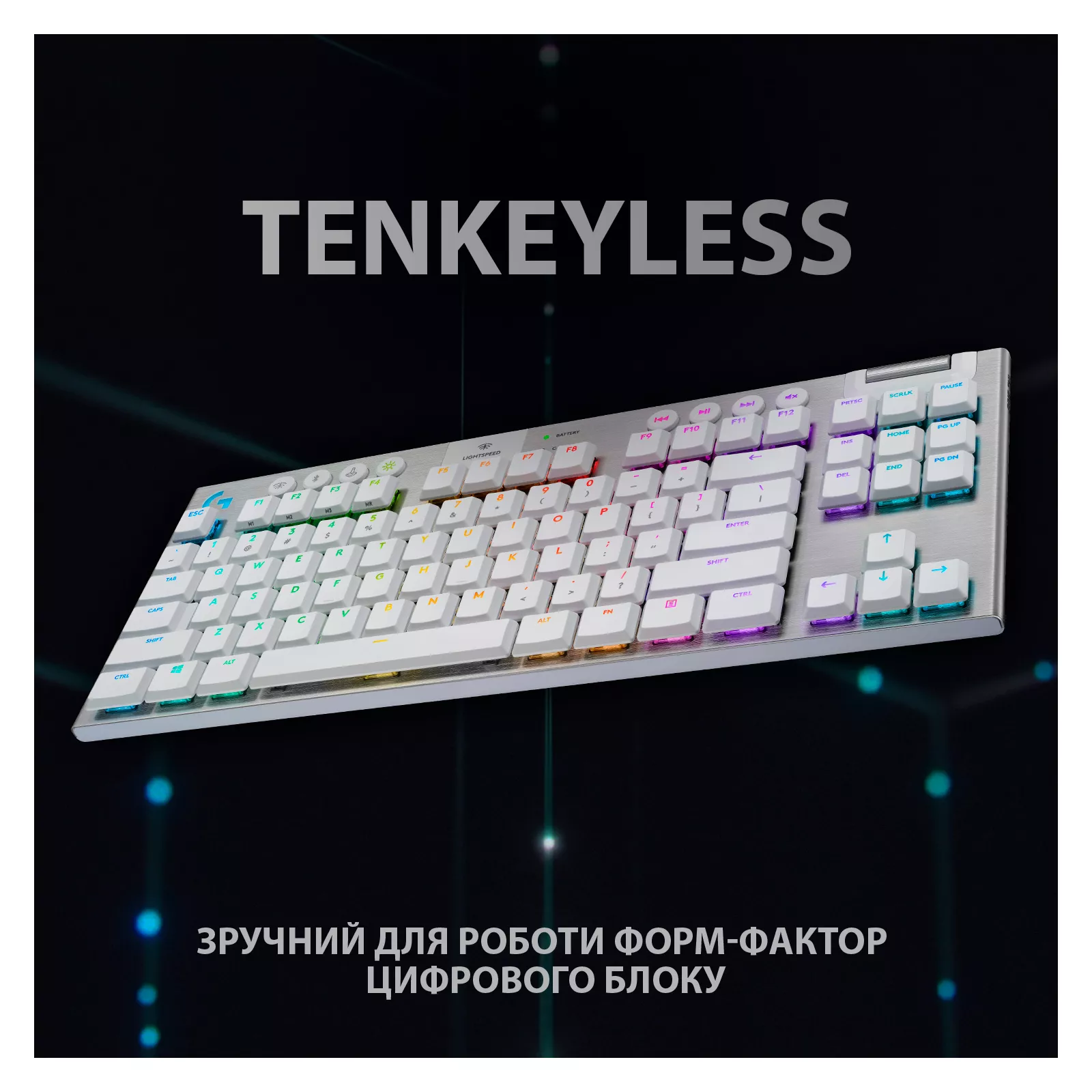 Клавиатура, ознаменовавшая настоящий прорыв в области конструирования и дизайна, теперь доступна в черном и белом цвете. В G915 TKL воплощены улучшенная технология беспроводной связи LIGHTSPEED и продвинута система RGB-подсветки LIGHTSYNC, а также применены качественные плоские механические переключатели. Все это вместе с исключительно высокой культурой уборки и материалами наилучшего качества позволило создать компактную клавиатуру G915 TKL с непревзойденными техническими характеристиками, потрясающей прочностью и эстетическим дизайном. КЛАВИАТУРА G915 TKL. Играйте на новом уровне.