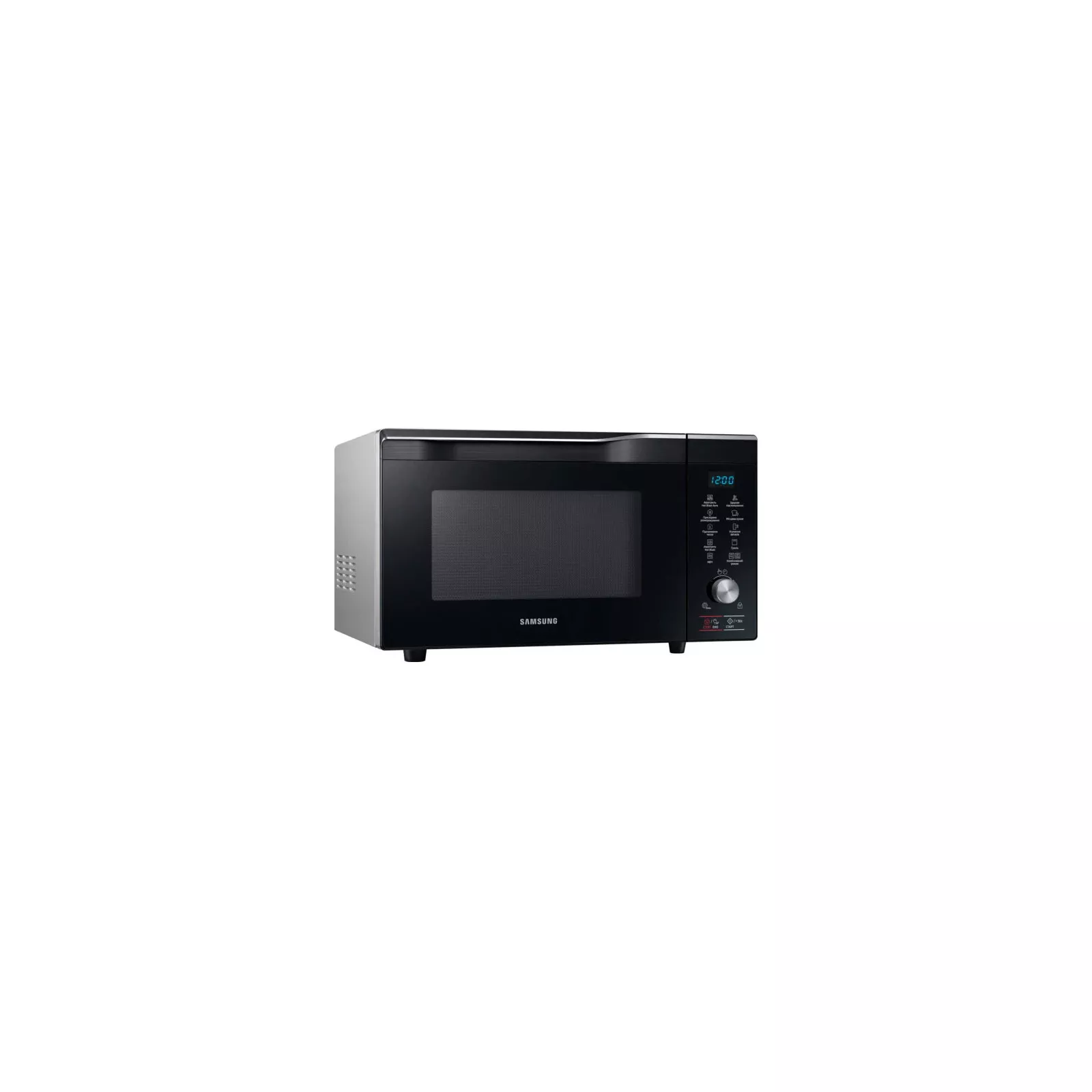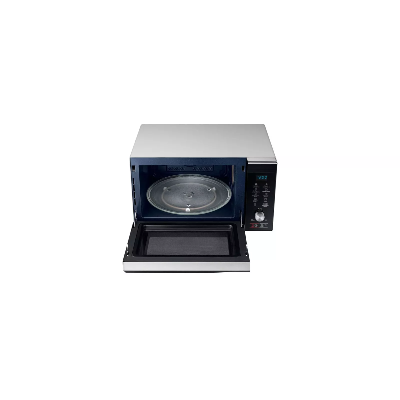 Микроволновка с конвекцией и грилем Samsung MC32K705 станет отличным приобретением и верным помощником для ежедневного использования. Данная модель обладает превосходными эксплуатационными характеристиками, благодаря чему отлично справляется с подогревом любых блюд, размораживанием, а также приготовлением воздушного пирога, курочки, мяса и других продуктов с ароматной и хрустящей корочкой. Объем камеры составляет 32 л, при этом поворотный столик диаметром 345 мм позволяет установить посуду большого размера, за счет чего прекрасно подойдет для пользования большой семьи. Мощность микроволновки составляет 900 Вт, что позволяет равномерно от дна до стен подогревать, готовить и размораживать. Качественное и надежное исполнение гарантирует не один год активной эксплуатации. К достоинствам Samsung MC32K7055CT/BW относится удобное и понятное сенсорное управление и поворотная кнопка, с помощью которых можно задать необходимые параметры работы, а также выбрать оптимальный режим мощности, большое смотровое стекло и яркий LED-индикатор. Для повышения уровня безопасности предусмотрена функция защиты от детей.