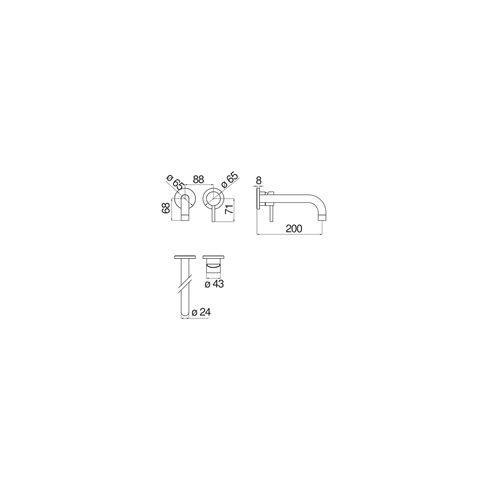 Nobili LV00199/1BM Смеситель для умывальника встраиваемый излив 200 мм без внутрь части, черный мат.