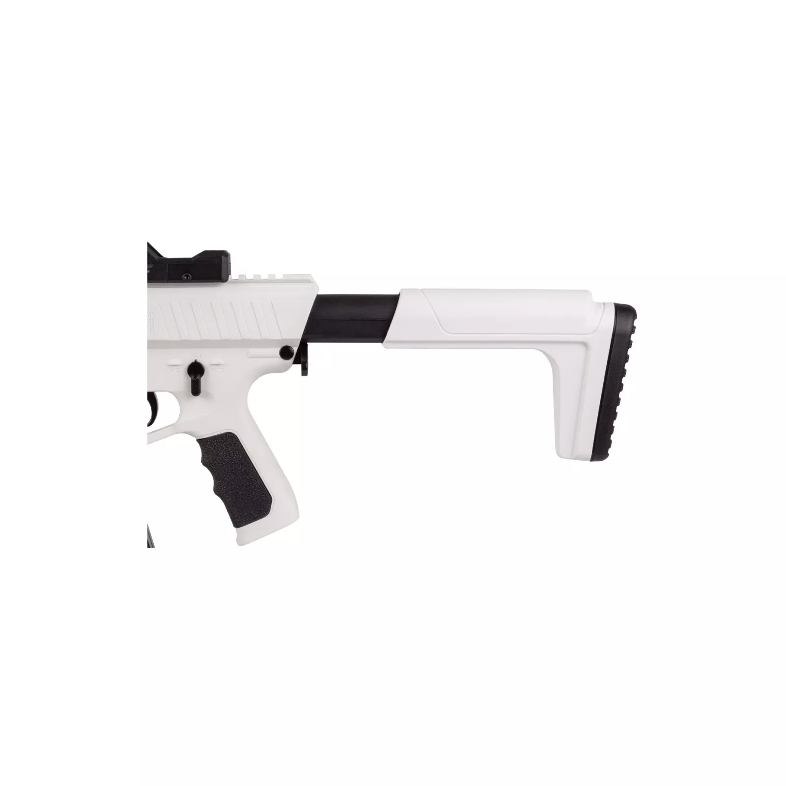Пневматическая винтовка Crosman ST-1-полноценное автоматическое пневматическое оружие, выполняющее двойную функцию-винтовки и пистолета. Изящная ST-1 оснащена и укомплектована магазином большой емкости, содержащим более 300 шариков. Зафиксируйте регулируемое/съемное ложе и удлинитель ствола, и вы получите винтовку с прицелом с красной точкой, готовую к стрельбе с дальнего расстояния. Снимите их – и вы получите полноценный автоматический пистолет AR.