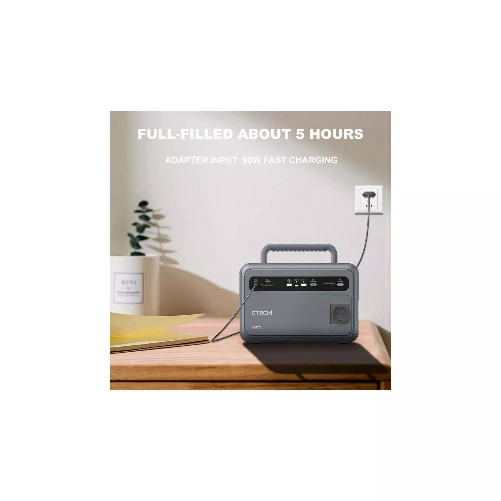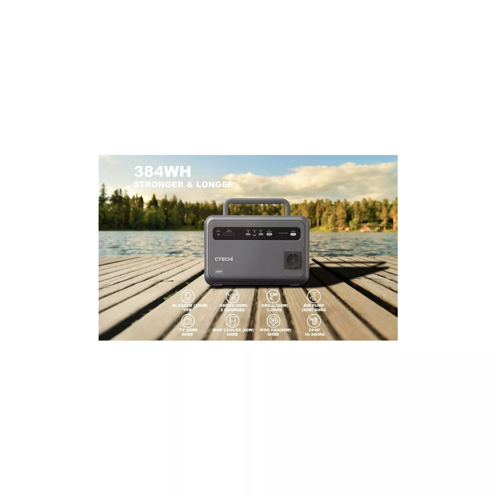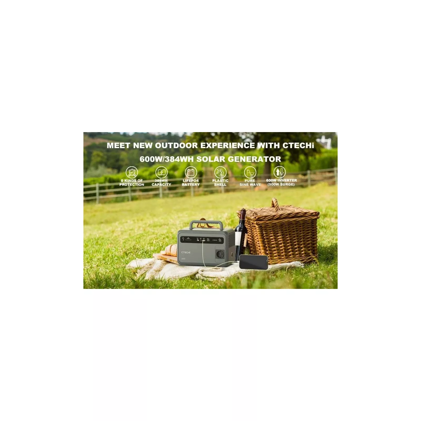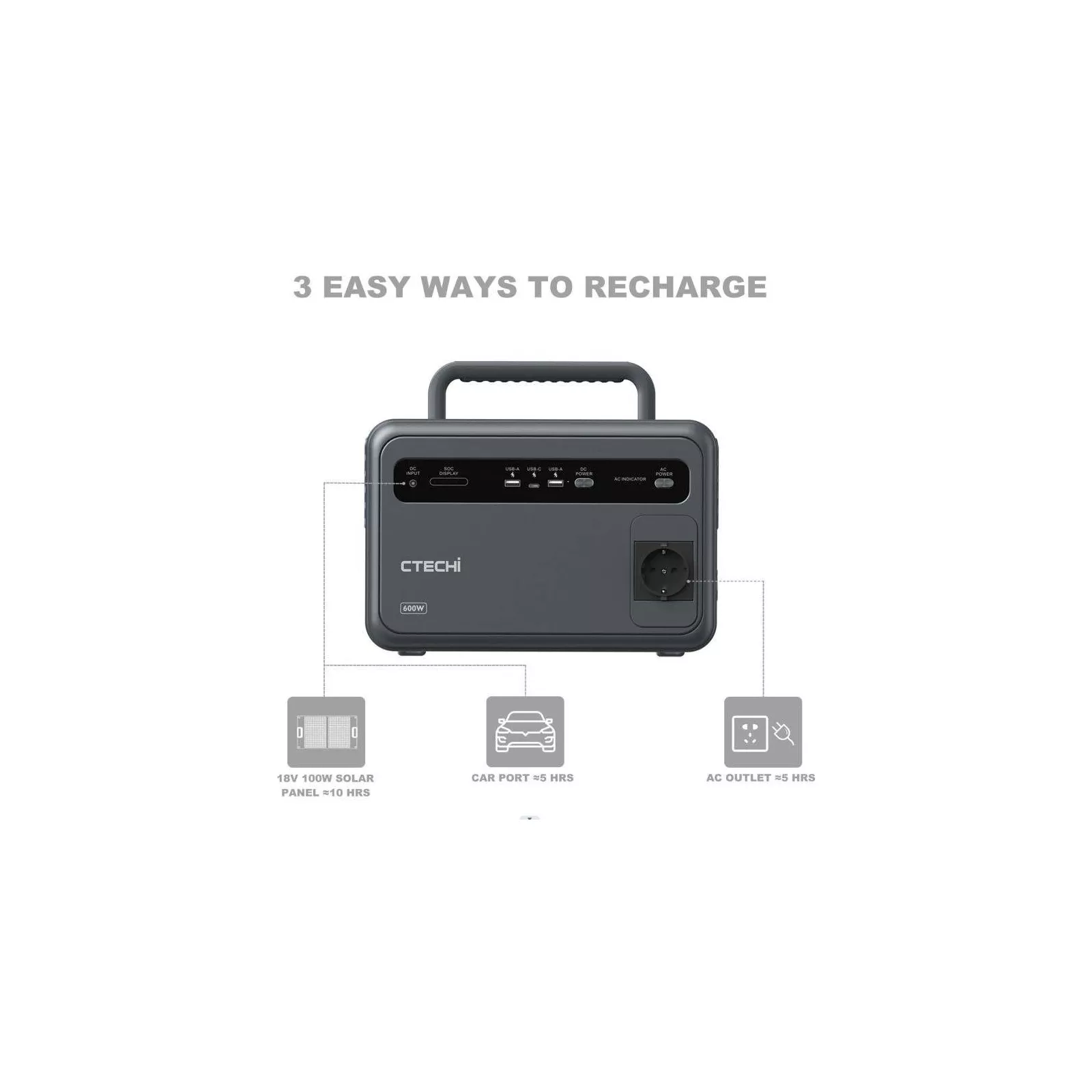 Зарядная станция CTECHi PPS-GT600 мощностью 600W/384Wh – это универсальная аккумуляторная электростанция мощностью 600Вт/384Вт*ч. Время полной зарядки электростанции около 5-6 часов от обычной розетки. 6 устройств можно заряжать одновременно. Легкая конструкция с ручкой. Зарядная станция подходит для кемпинга, путешествий, отдыха на природе, чрезвычайных ситуаций, а также незаменима при веерных отключениях электричества в квартирах городов или частных домах. Несколько выходов, номинальная мощность 600 Вт