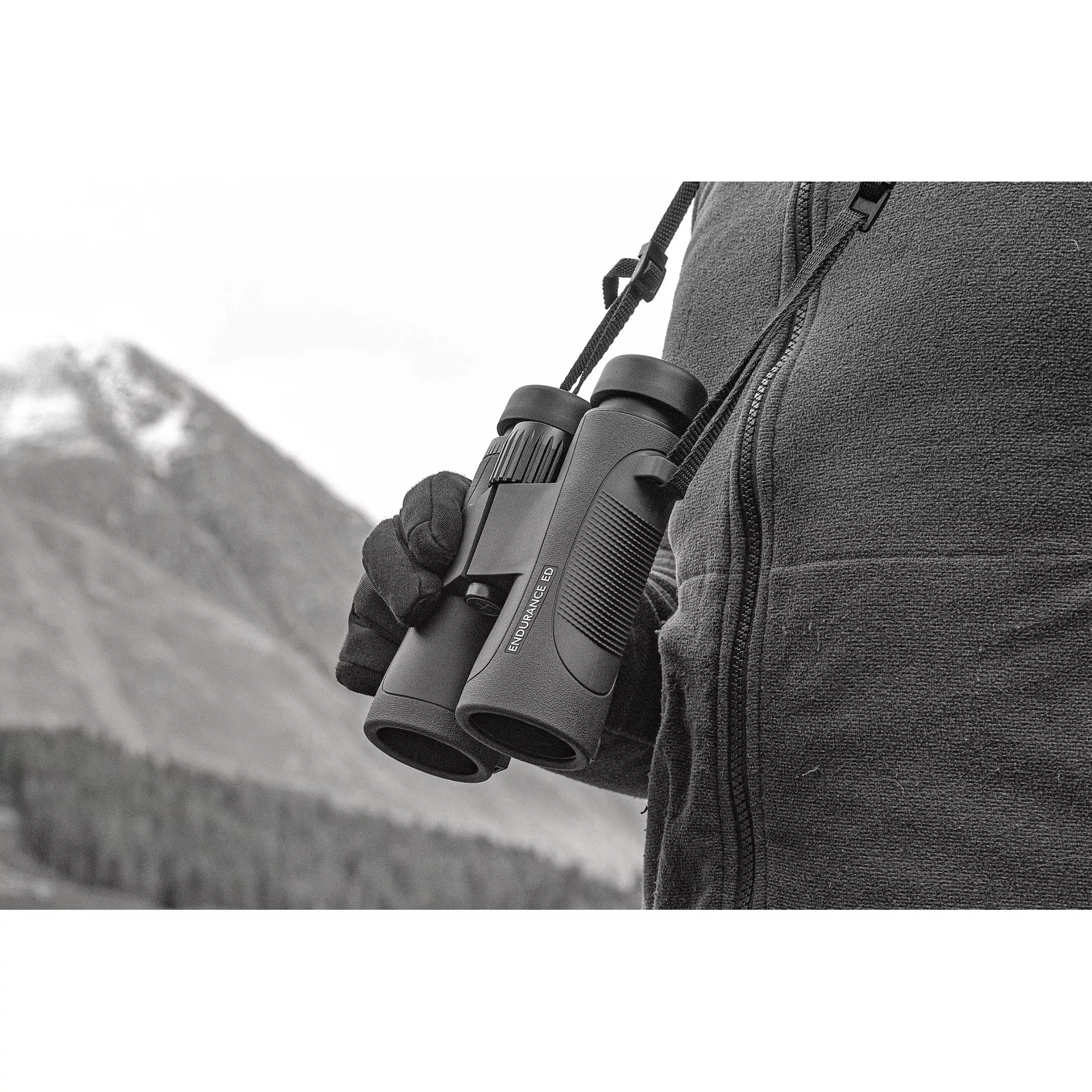 Призмы из бариевого крона BAK4 с нанесенным покрытием для фазовой коррекции позволяют добиться необходимой четкости и контрастности изображения. Прочный корпус из магниевого сплава имеет резиновое покрытие, обеспечивающее удобный и надежный хват прибора как одной, так и двумя руками. Нашний ремень, ярко желтого цвета, хорошо заметен и не тонет в воде.