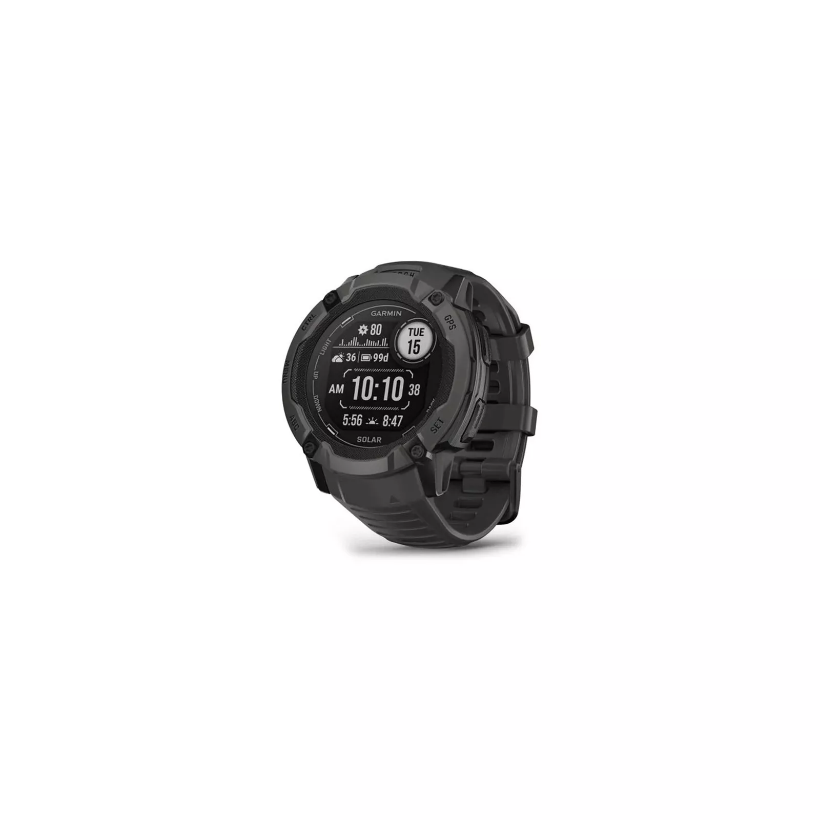 Посмотрите на часы и отправляйтесь в приключения. Подзарядка от солнцаЛинза Power Glass™, заряжаемая от солнечной энергии, продлевает срок работы батареи, производя на 50% больше энергии по сравнению с линзой Instinct® 2 Solar. В режиме смартчаса, при условии зарядки от солнечной батареи, вы получите неограниченное время автономной работы устройства 1.