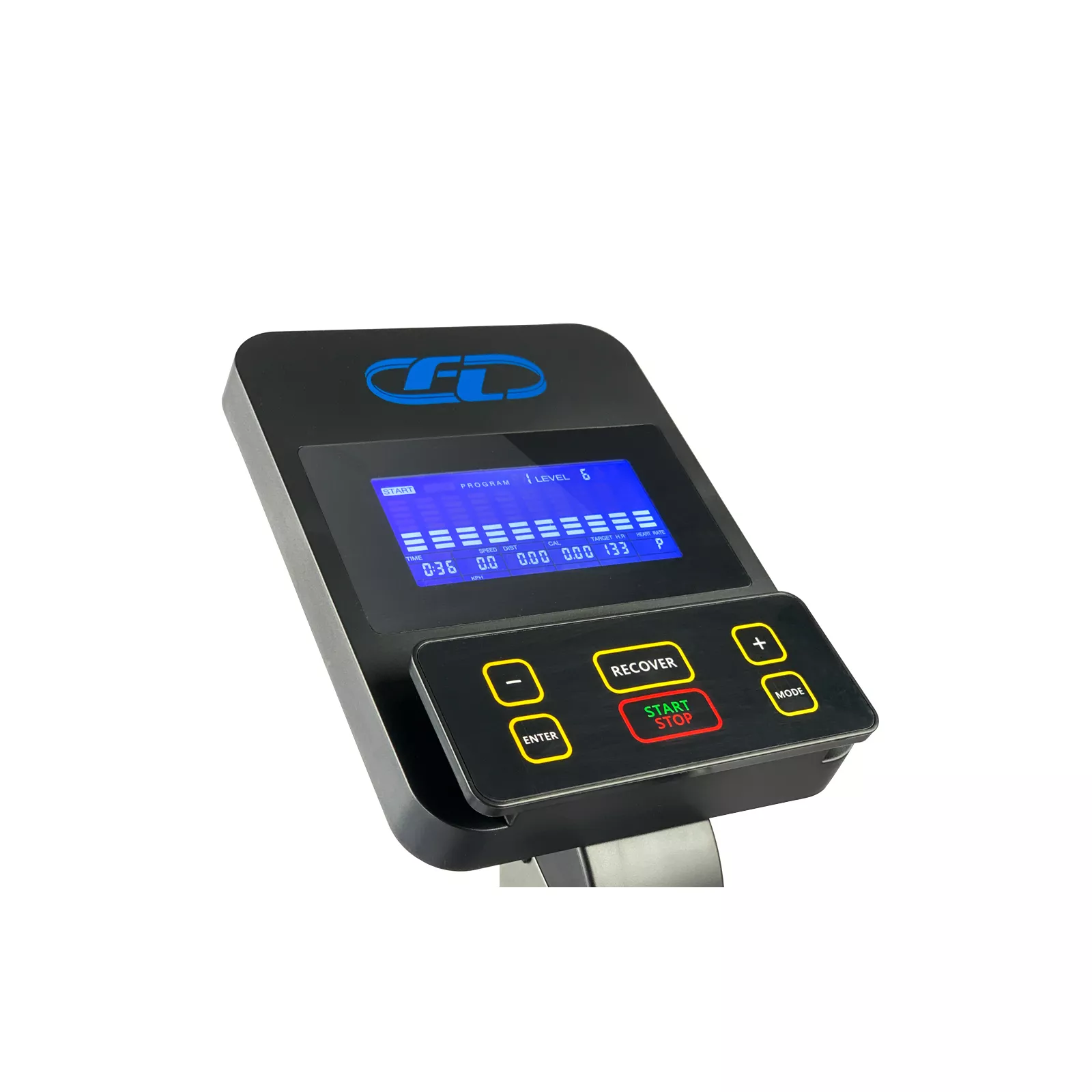 Отслеживание скорости восстановления пульса. Тренажер оборудован функцией Recovery, позволяющей отслеживать скорость возврата пульса в нормальное состояние. Этот параметр играет немаловажную роль в оценке вашей физической формы. Чем быстрее ваше сердце восстанавливается после физической нагрузки, то в лучшей физической форме вы находитесь. Используя эту функцию, вы сможете мониторить свой прогресс на протяжении всего курса тренировок и видеть конкретные результаты своих усилий. максимальный контроль над вашими тренировками. Она отображает все ключевые показатели, необходимые для мониторинга и регулирования вашей нагрузки: скорость, обороты в минуту, время, общую и текущую дистанцию, расход калорий, мощность в ваттах, пульс, целевую частоту сердечных сокращений, текущую программу тренировки и текущий уровень сопротивления.