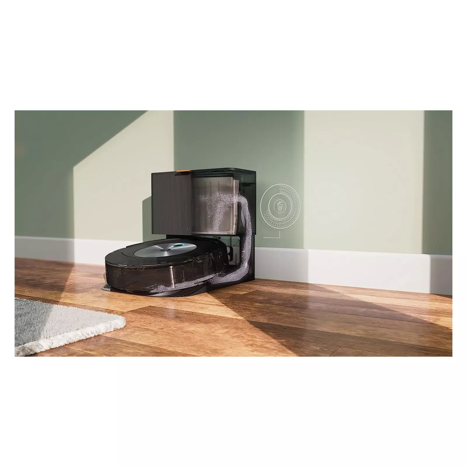 По прибытии на базу извлечения мусора Clean Base* ваш пылесос автоматически опорожняется в мешок. Мешок для мусора может вместить до 60 полных сборных корзинок робота-пылесоса. В базу Clean Base может поместиться еще один запасной мешок.