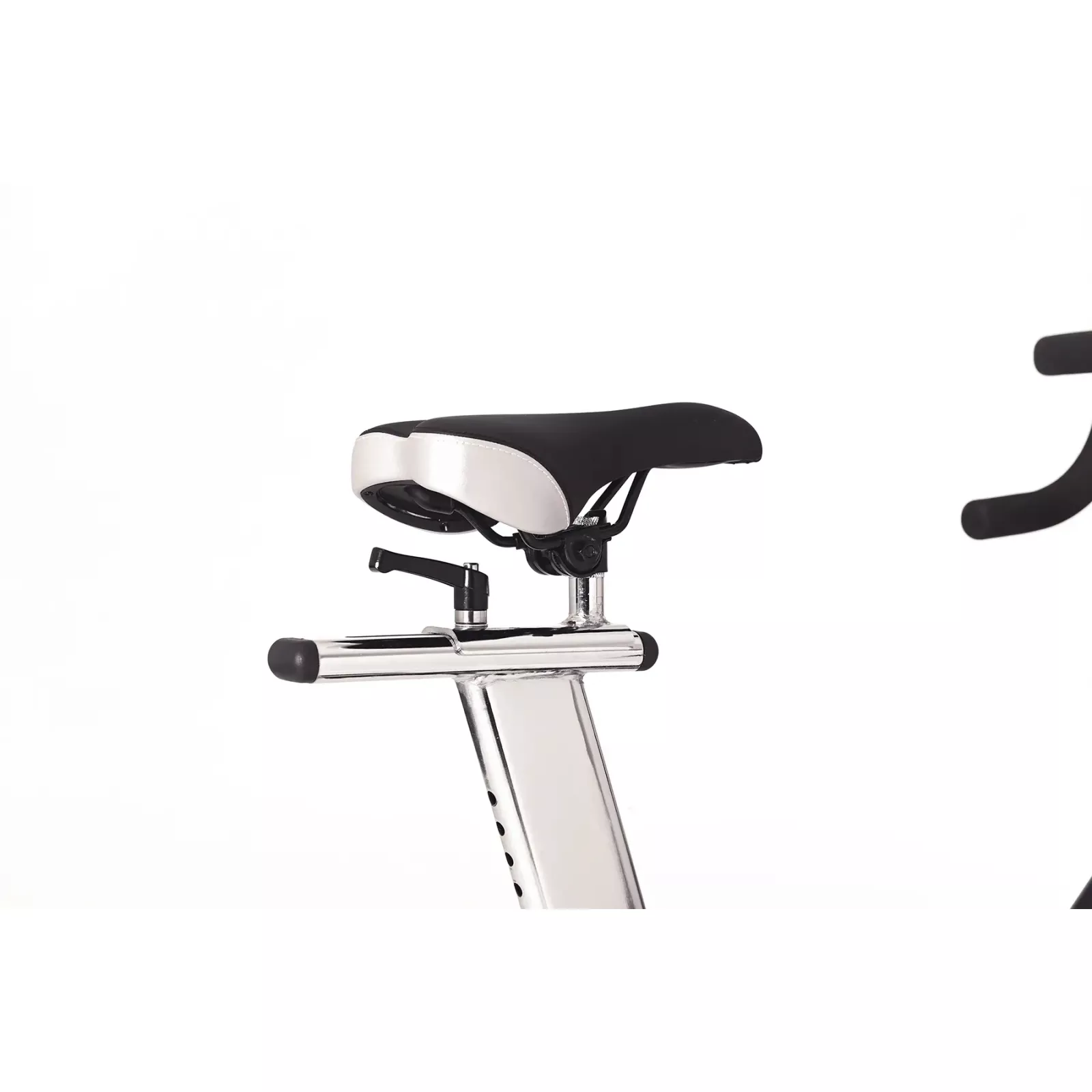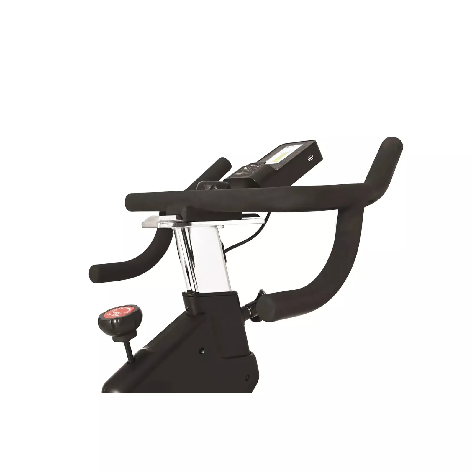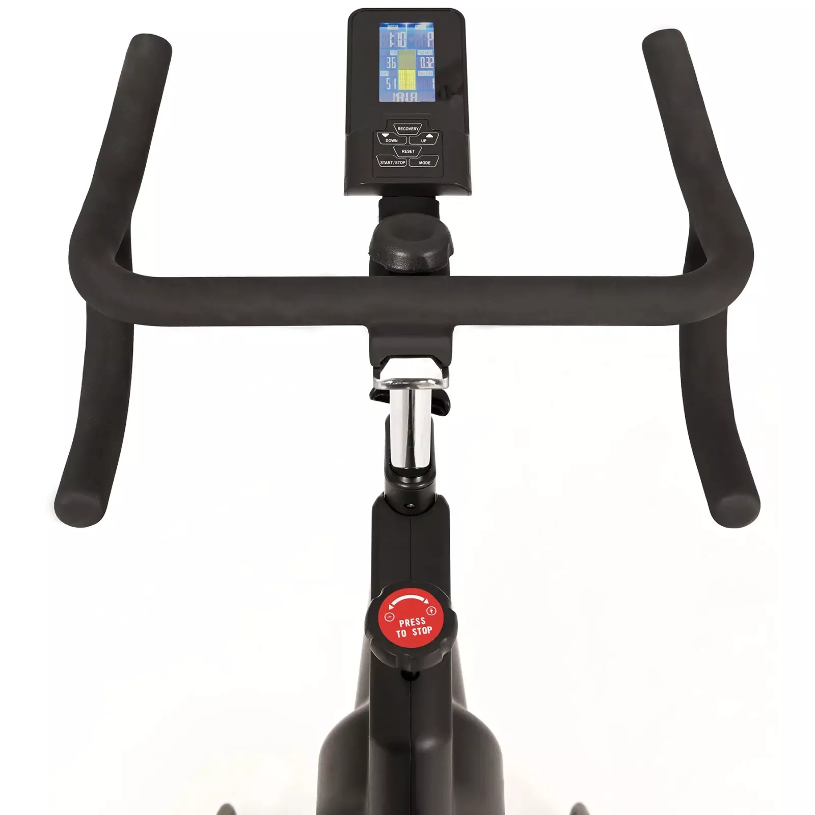 Тяжелый 22-килограммовый маховик вместе с ременным приводом обеспечивают бесшумность работы тренажера и достаточную нагрузку даже для подготовленных спортсменов. Спин байк рассчитан на вес до 150 кг и подойдет для пользователей ростом до 2 м. Нагрудный кардиодатчик (индикатор) для беспроводного измерения пульса уместен во время тренировки по одной из четырех пульсозависимых программ. Спортивные сидения и руль регулируются по высоте и в горизонтальной плоскости, обеспечивая индивидуальную настройку. Транспортировочные ролики в передней части тренажера позволяют свободно перемещать его по комнате.