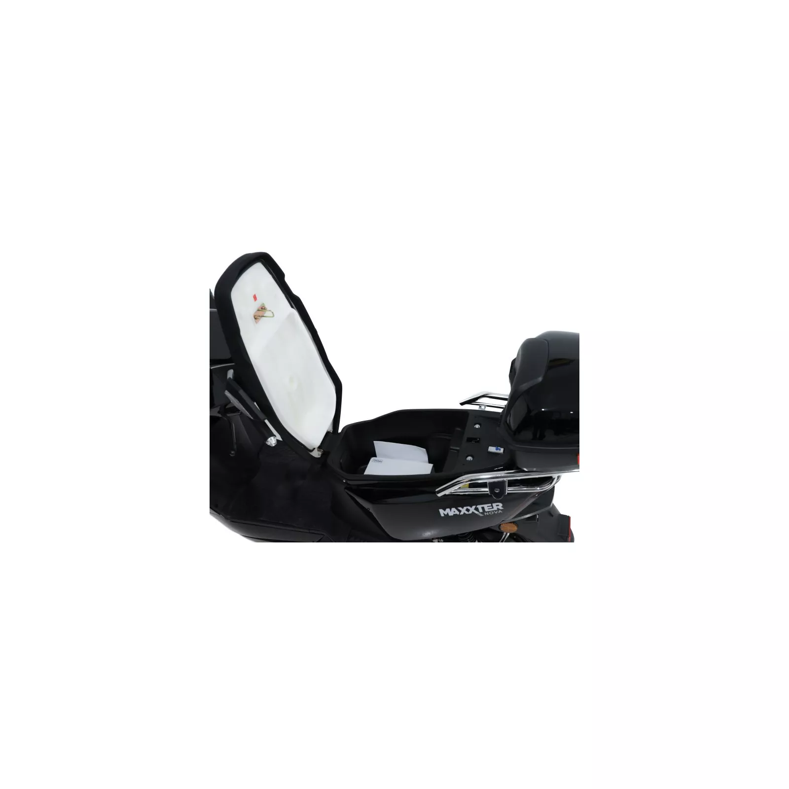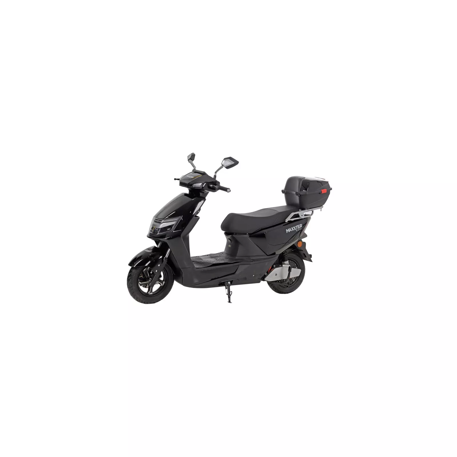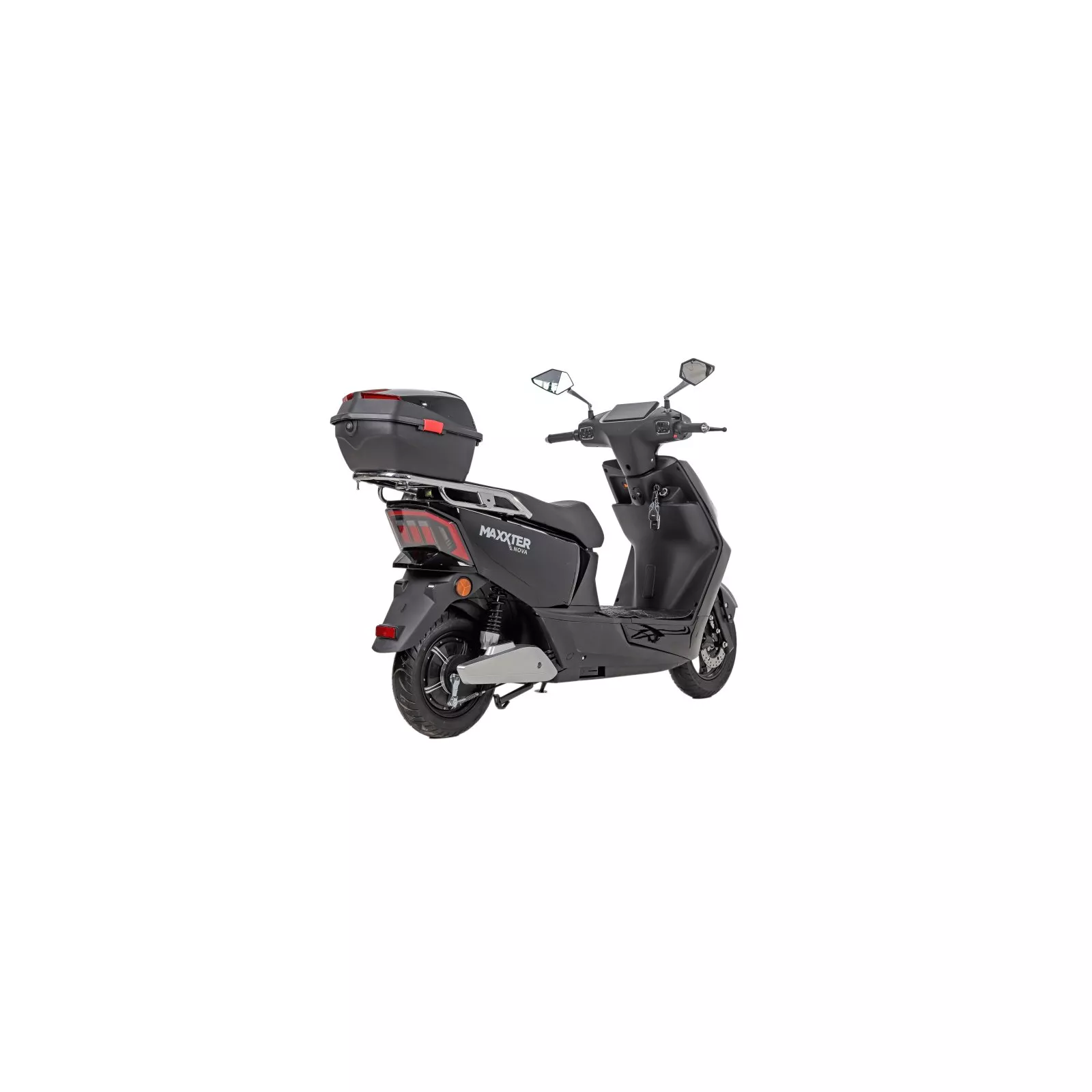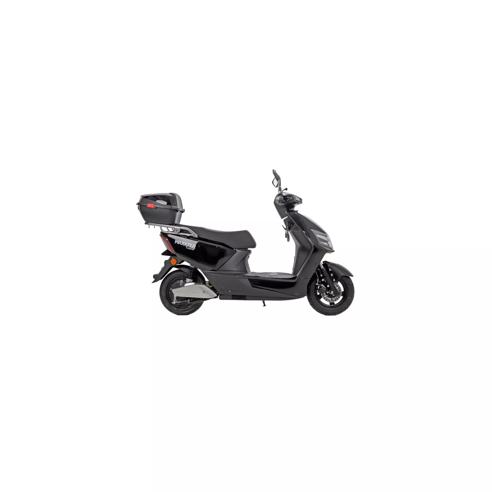 Maxxter NOVA питается от мощного аккумулятора, который можно зарядить от обычной розетки. Его емкость позволяет скутеру преодолевать расстояние до 80 км без подзарядки, а 1000 Вт мощности способны разгонять его до 45 км/ч.. Здесь вы найдете габаритные огни, поворотники, яркие фары, звуковой сигнал, сигнализацию с защитой от угона, которая блокирует колесо, и другие полезные детали. Скутер имеет карман для личных вещей и вместительный багажник с замком.