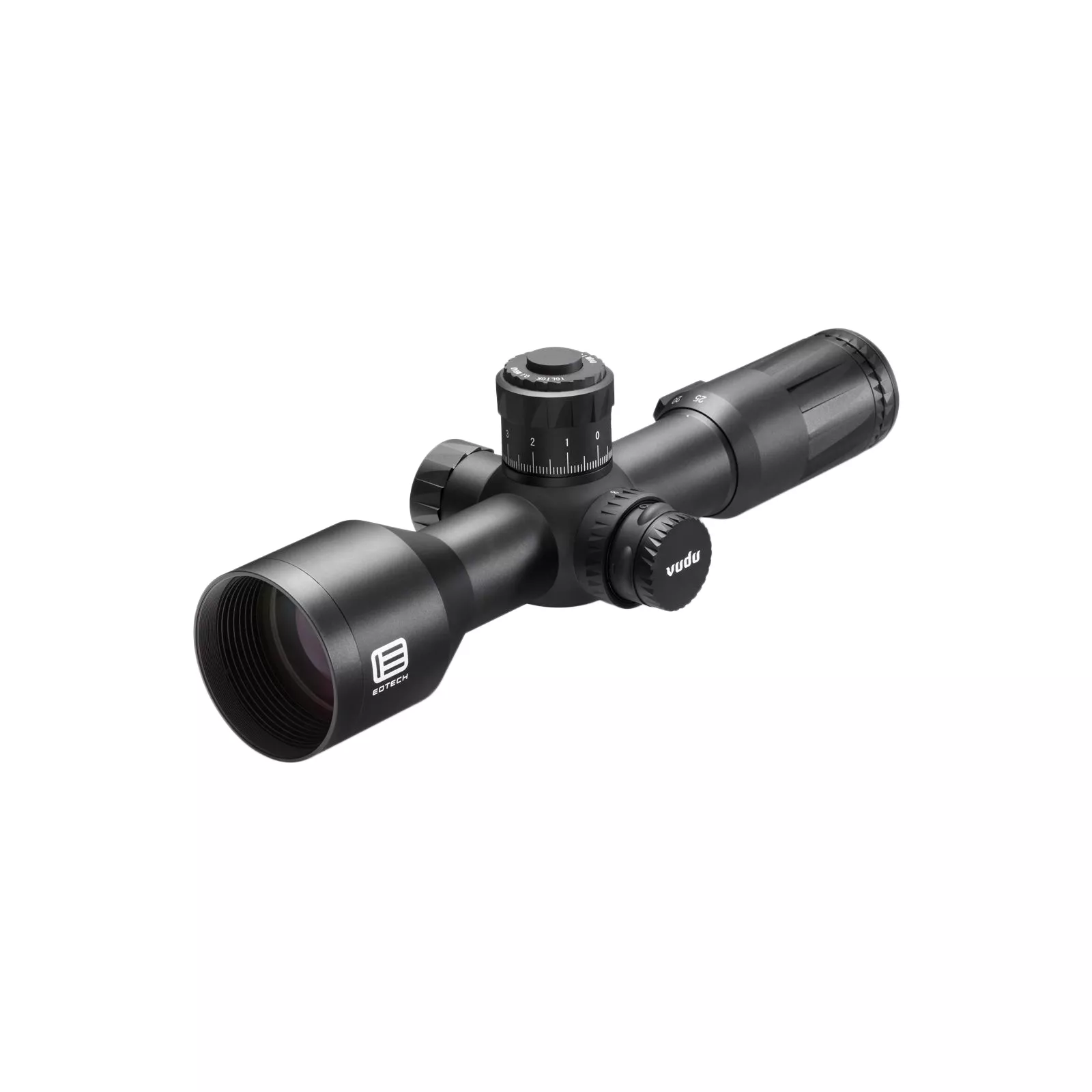 Vudu 5-25X50 в первой фокальной плоскости идеально подходит для винтовок с короткой платформой. Имея длину 285 мм, 5-25X является одним из кратчайших винтовочных прицелов с первой фокальной плоскостью на рынке. Барабанчик включает в себя систему блокировки EZ Chek Zero Stop от EOTECH.