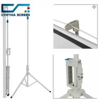 Проекционные экраны на штативе — это портативное решение для любых нужд проецирования. В штативах используется выдвижной экран с ручным управлением, при котором корпус прикрепляется к отдельно стоящей платформе штатива. Популярные в школах из-за их мобильного дизайна и низкой стоимости, штативы также широко используются для мобильных бизнес-презентаций, выставок, домашнего кинотеатра, свадеб и т. д.