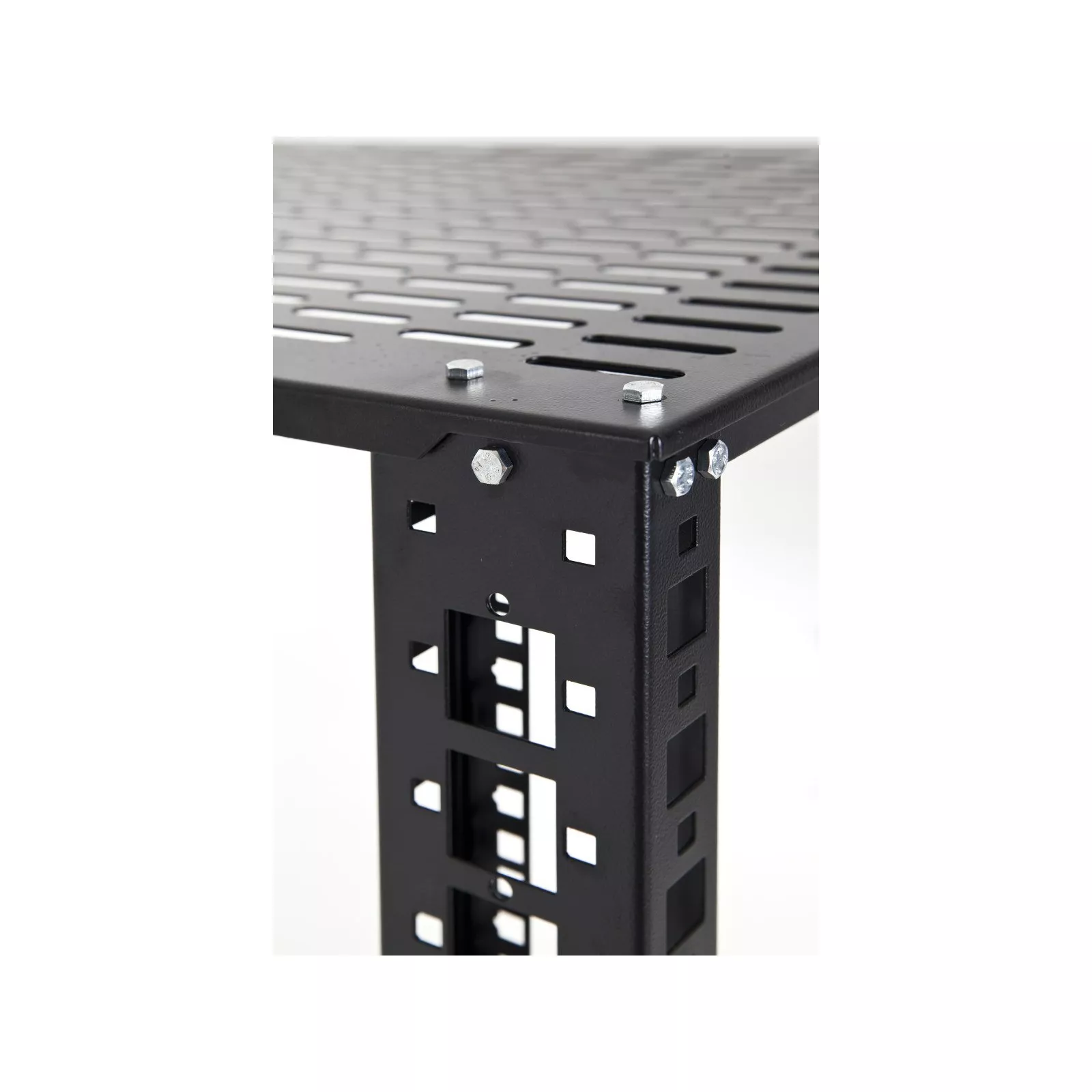 • Стойки комплектуются верхней полкой, которая придает ей большую жесткость.