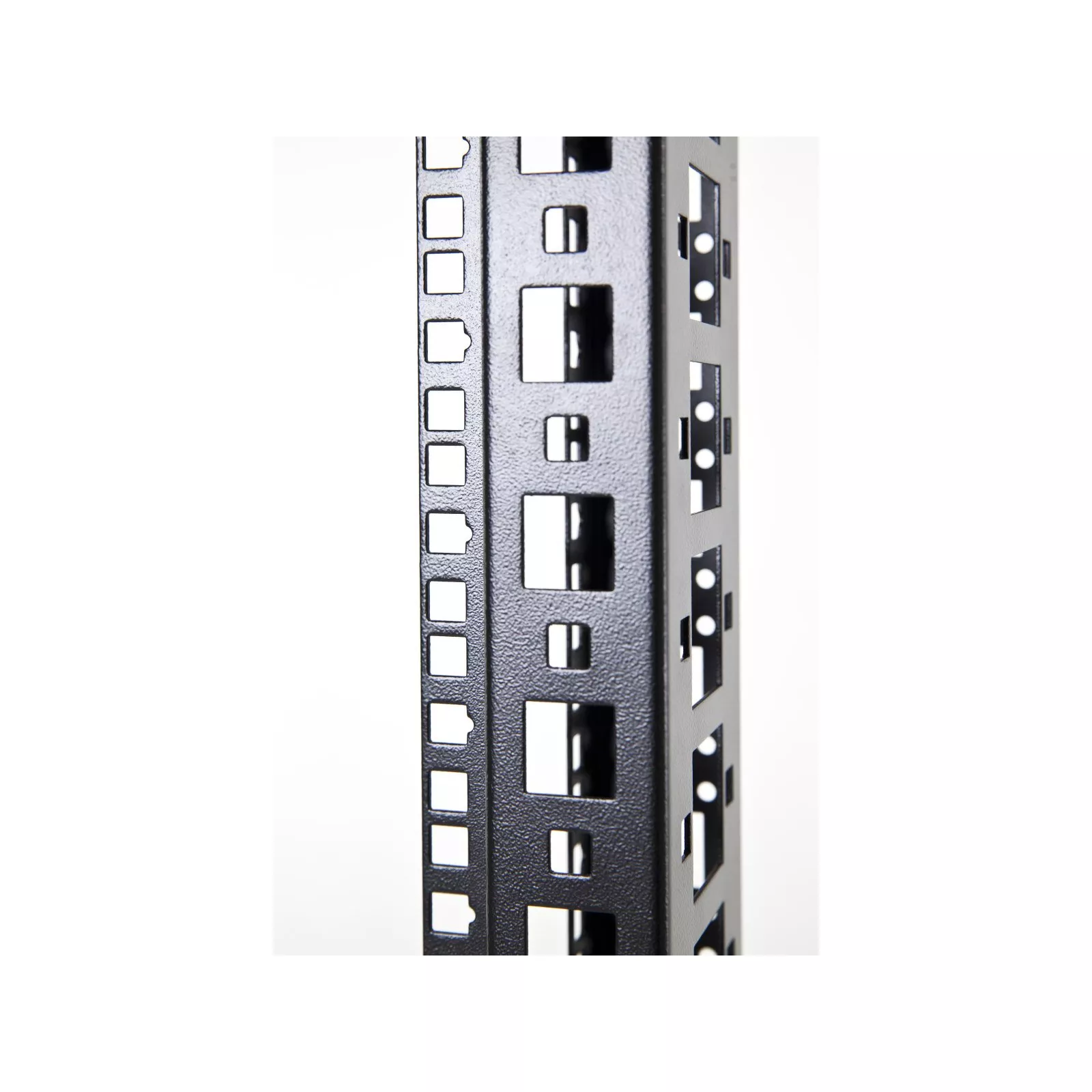 • Сложный профиль 19” монтажных рельсов делает стойку жесткой, несмотря на ажурный и воздушный вид.