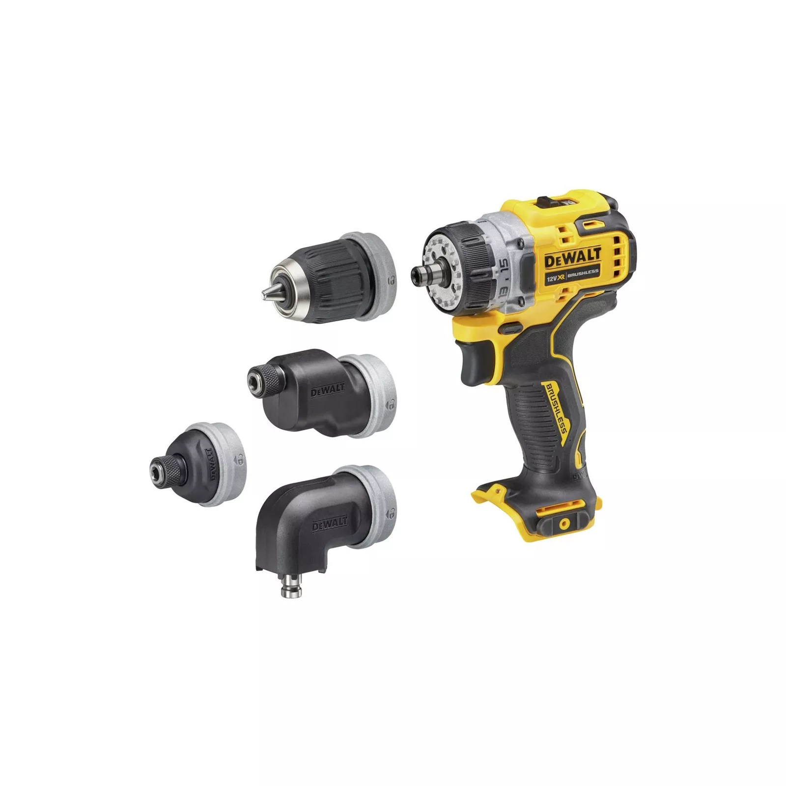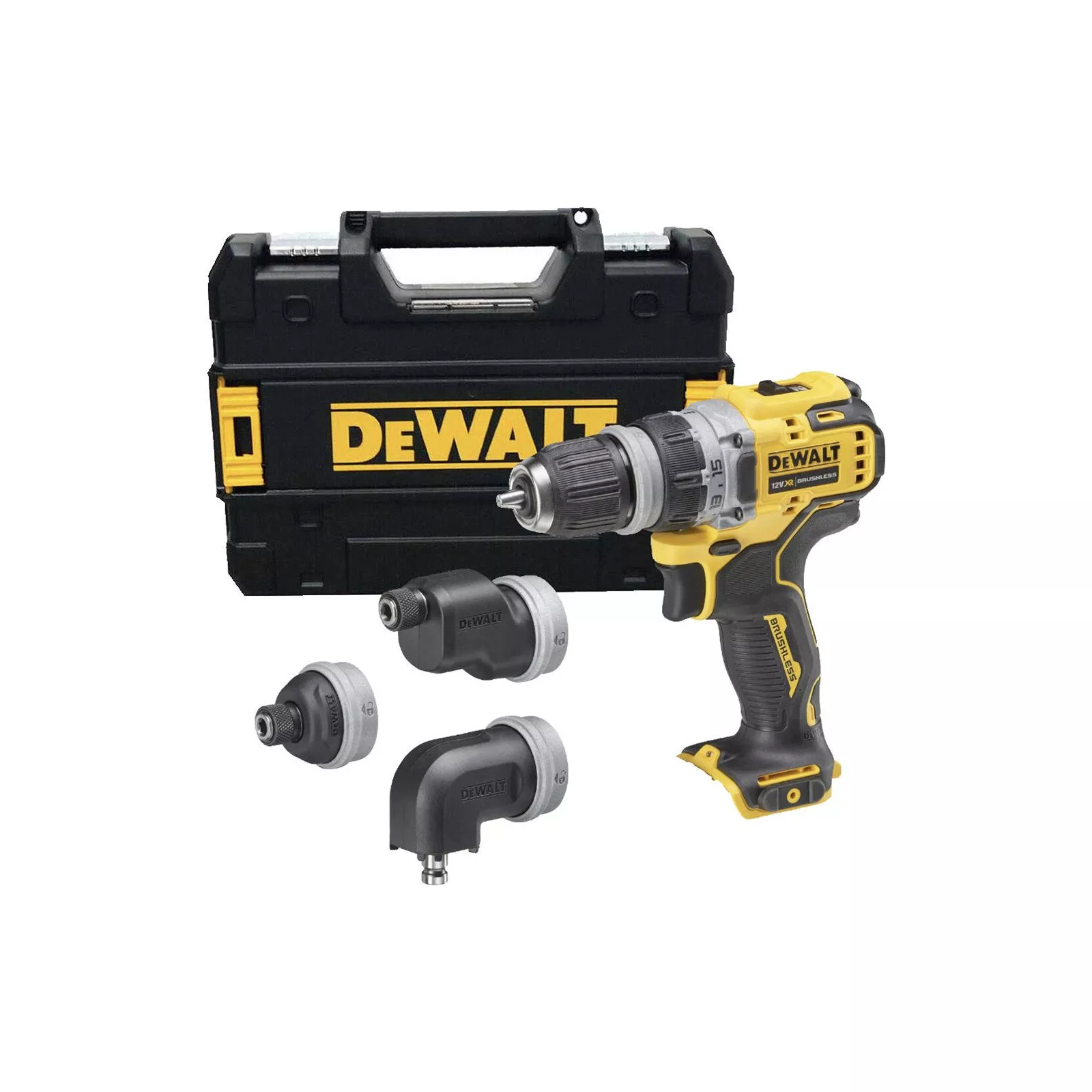 ?Полностью резиновая анатомическая рукоятка. Бесщеточный двигатель. Очень легкий и компактный дизайн. Разработанный для улучшения доступа к труднодоступным местам, этот комплект дрели-шуруповерта имеет 4 специальные насадки.